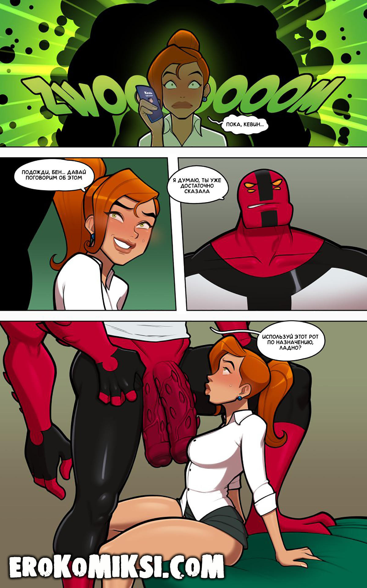 Порно комикс Бен 10: Забавы с Гвен. Гвен только что вернулась из колледжа и её дружок Кевин сразу же захотел с ней встретиться, однако Гвен начала его отшивать, потому что в это время она уже веселилась с Беном, который тоже соскучился по своей любимой сестрёнке. Пока Гвен болтала с Кевином, Бен решил не терять времени зря и начал вылизывать сочную задницу сестрёнки…