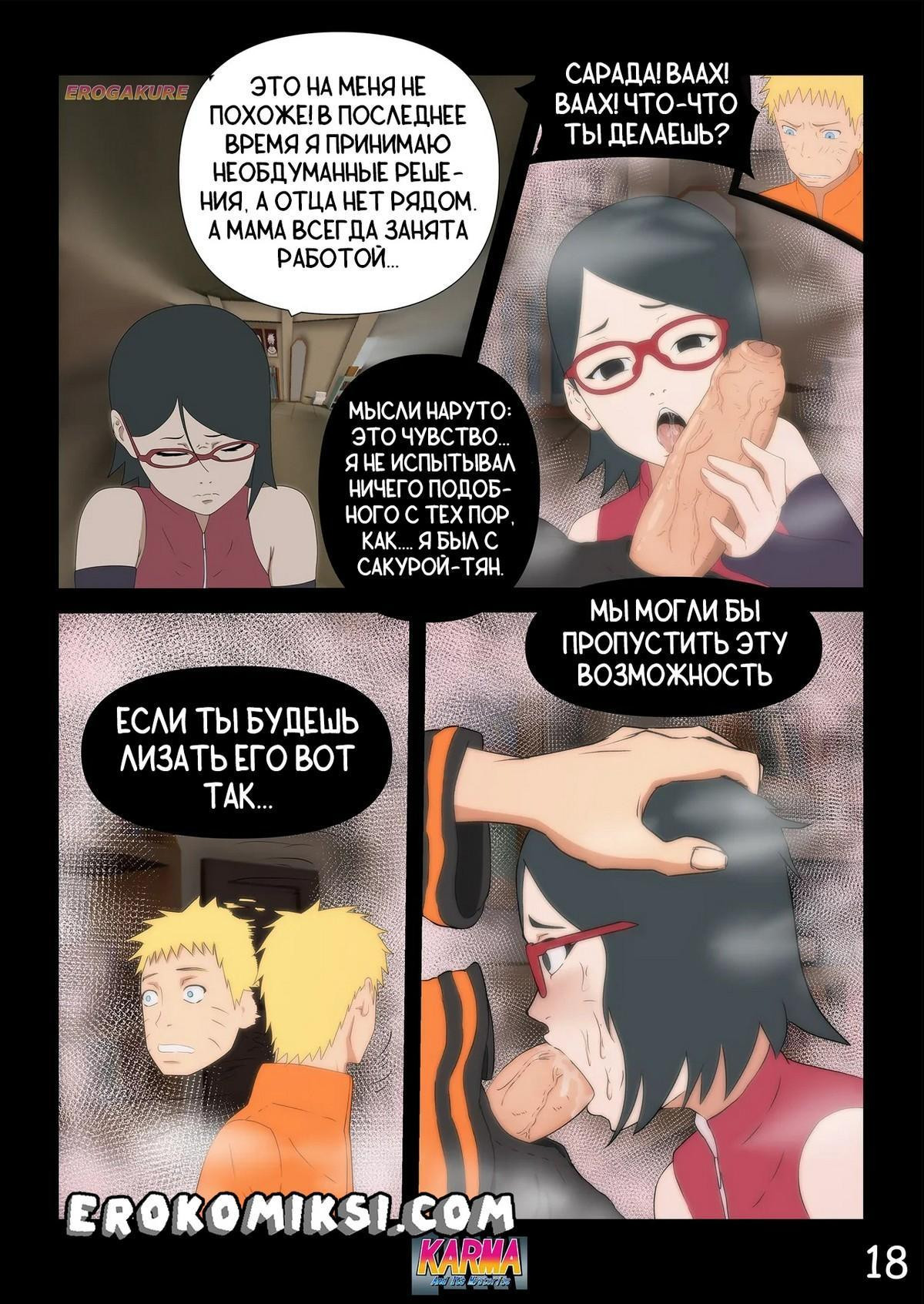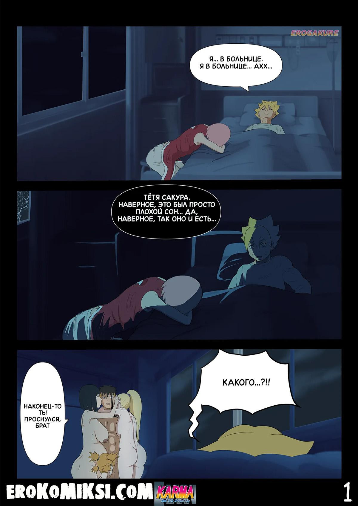 Порно комикс Боруто. Карма и её тайны. Часть 3. Пока Боруто проходит курс реабилитации в больнице и за ним ухаживает Сарада, мать Боруто, Хината, увлечённая молодым твёрдым членом Каваки, совсем обо всём позабыла и её разум задурманен лишь этим членом, и всё происходящее вокруг её абсолютно не интересует…
