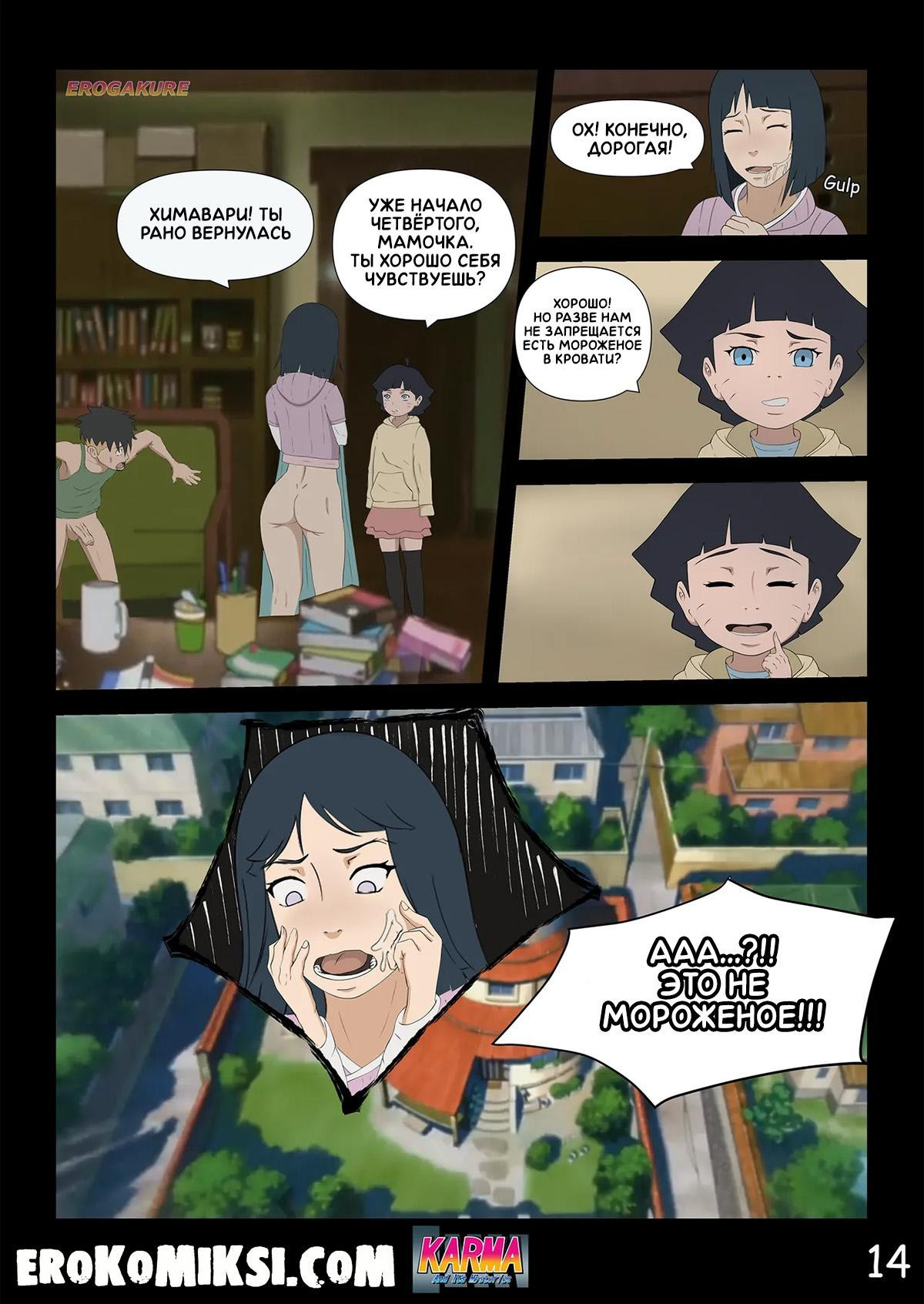 Порно комикс Боруто. Карма и её тайны. Часть 3. Пока Боруто проходит курс реабилитации в больнице и за ним ухаживает Сарада, мать Боруто, Хината, увлечённая молодым твёрдым членом Каваки, совсем обо всём позабыла и её разум задурманен лишь этим членом, и всё происходящее вокруг её абсолютно не интересует…