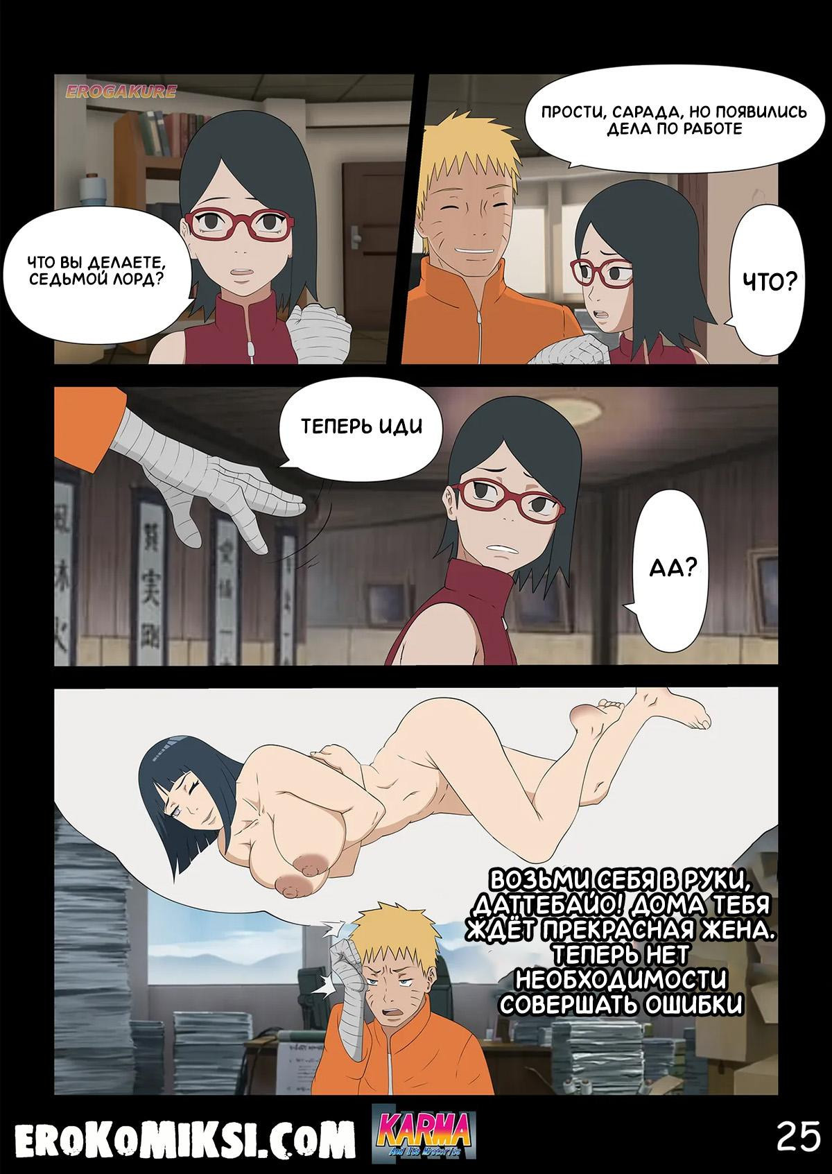 Порно комикс Боруто. Карма и её тайны. Часть 3. Пока Боруто проходит курс реабилитации в больнице и за ним ухаживает Сарада, мать Боруто, Хината, увлечённая молодым твёрдым членом Каваки, совсем обо всём позабыла и её разум задурманен лишь этим членом, и всё происходящее вокруг её абсолютно не интересует…