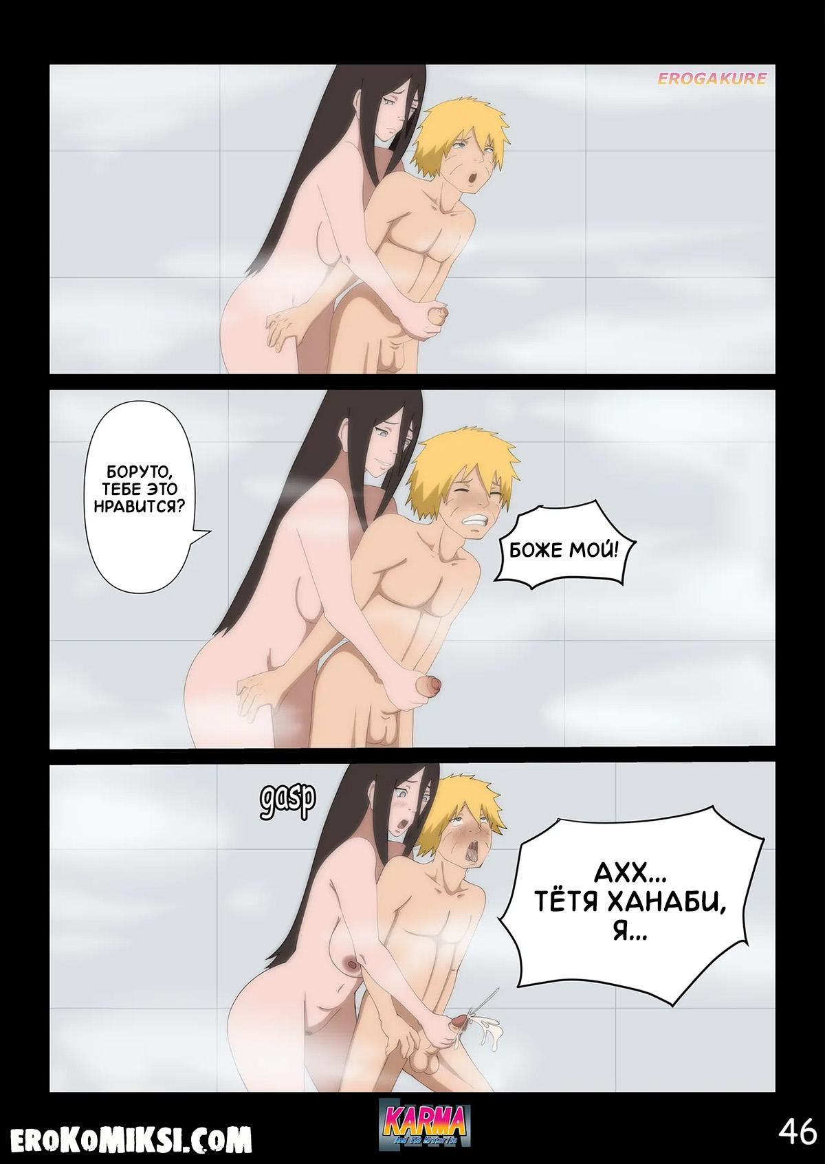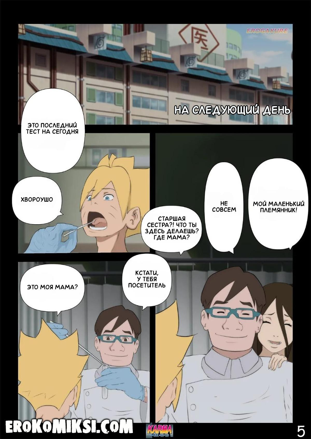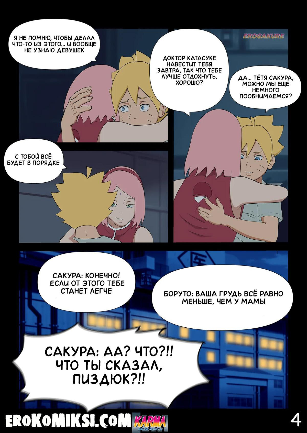 Порно комикс Боруто. Карма и её тайны. Часть 3. Пока Боруто проходит курс реабилитации в больнице и за ним ухаживает Сарада, мать Боруто, Хината, увлечённая молодым твёрдым членом Каваки, совсем обо всём позабыла и её разум задурманен лишь этим членом, и всё происходящее вокруг её абсолютно не интересует…