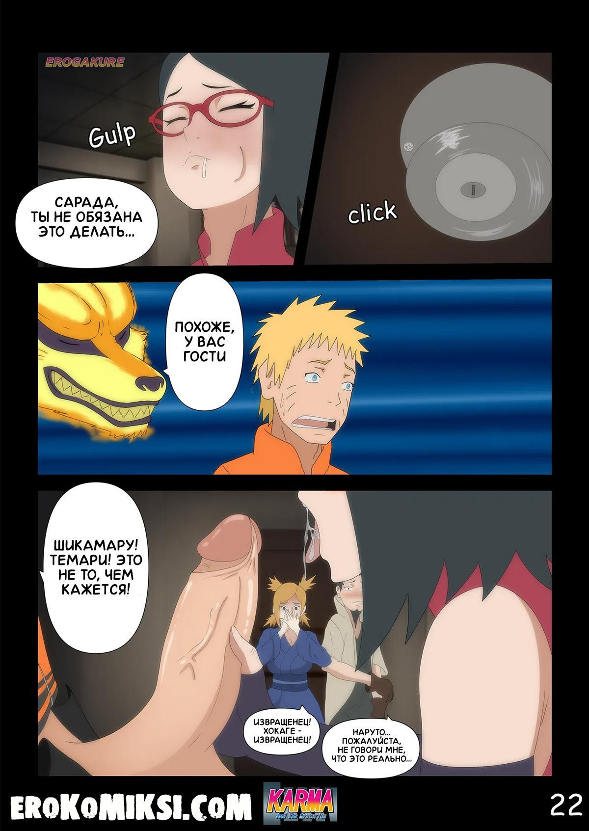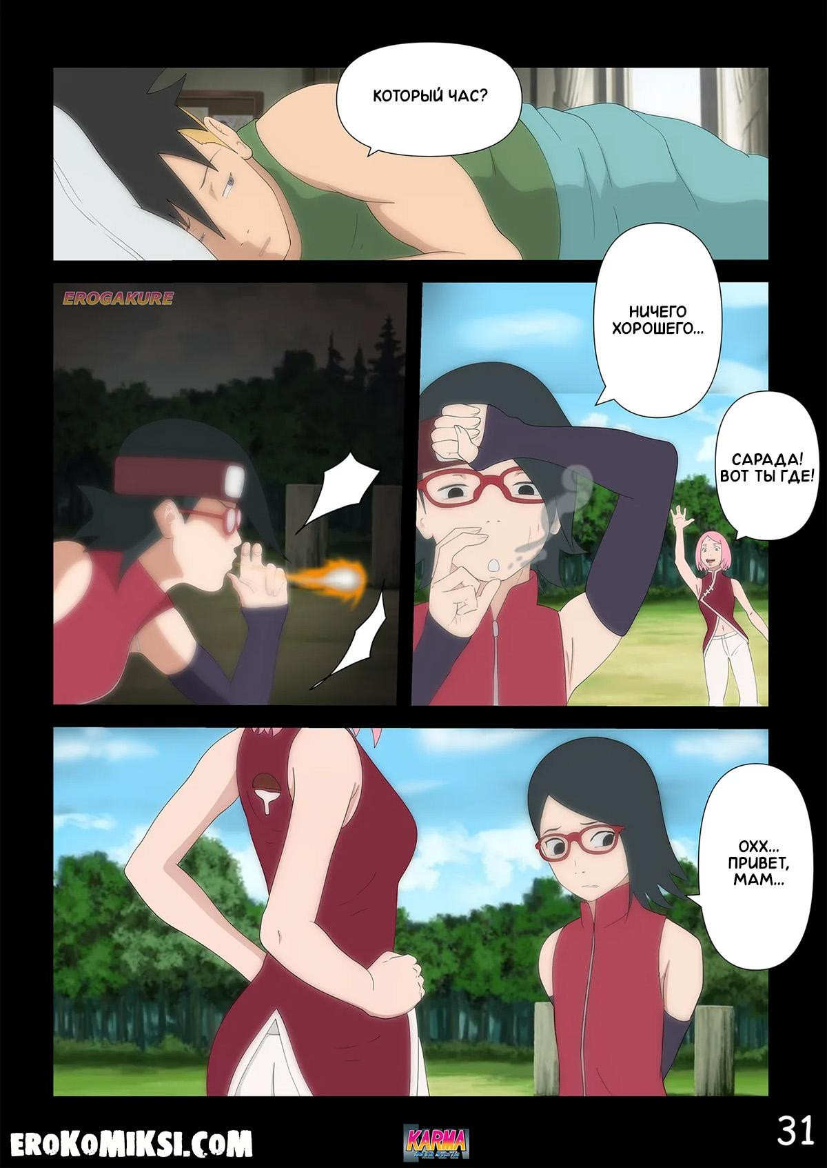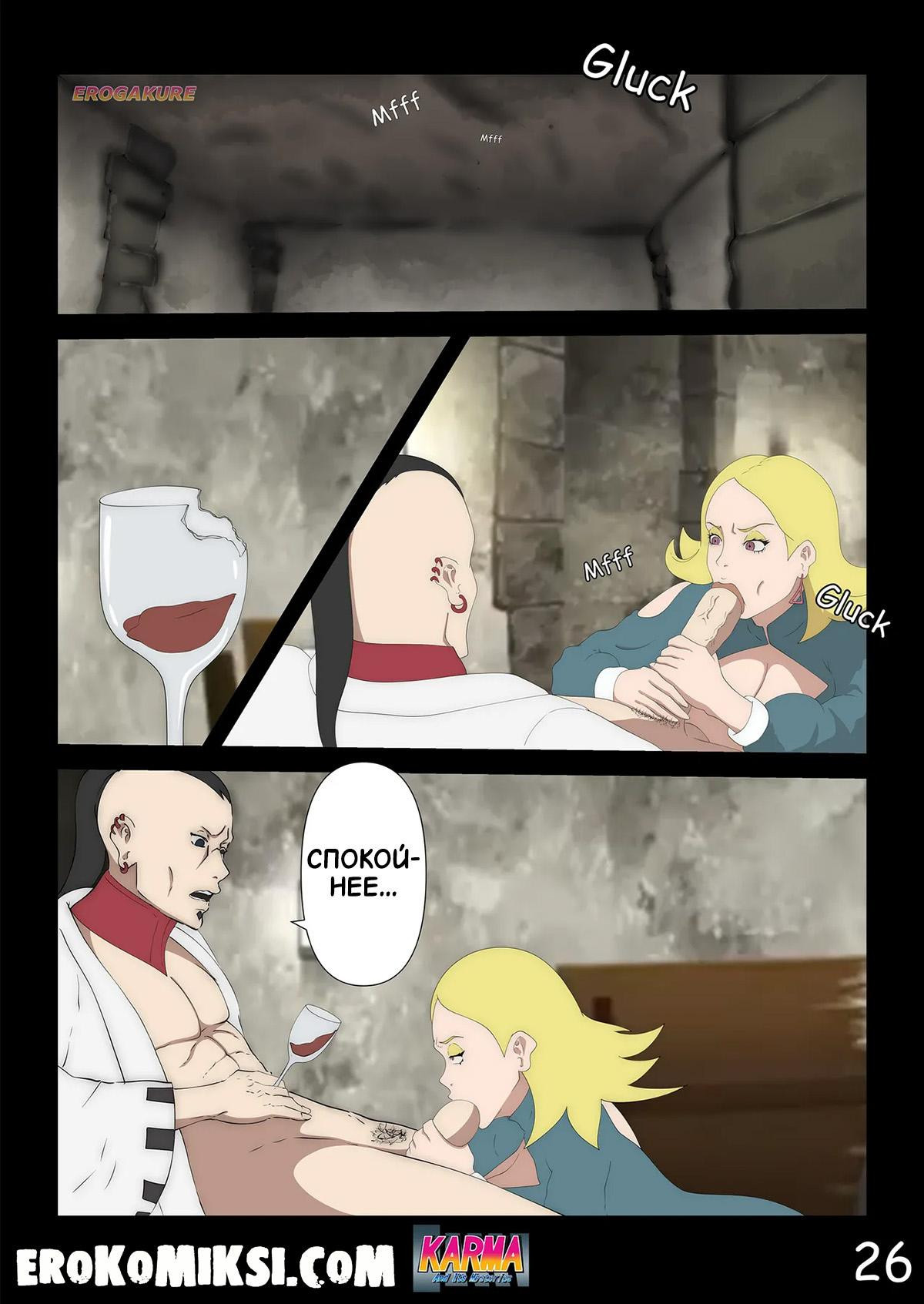 Порно комикс Боруто. Карма и её тайны. Часть 3. Пока Боруто проходит курс реабилитации в больнице и за ним ухаживает Сарада, мать Боруто, Хината, увлечённая молодым твёрдым членом Каваки, совсем обо всём позабыла и её разум задурманен лишь этим членом, и всё происходящее вокруг её абсолютно не интересует…