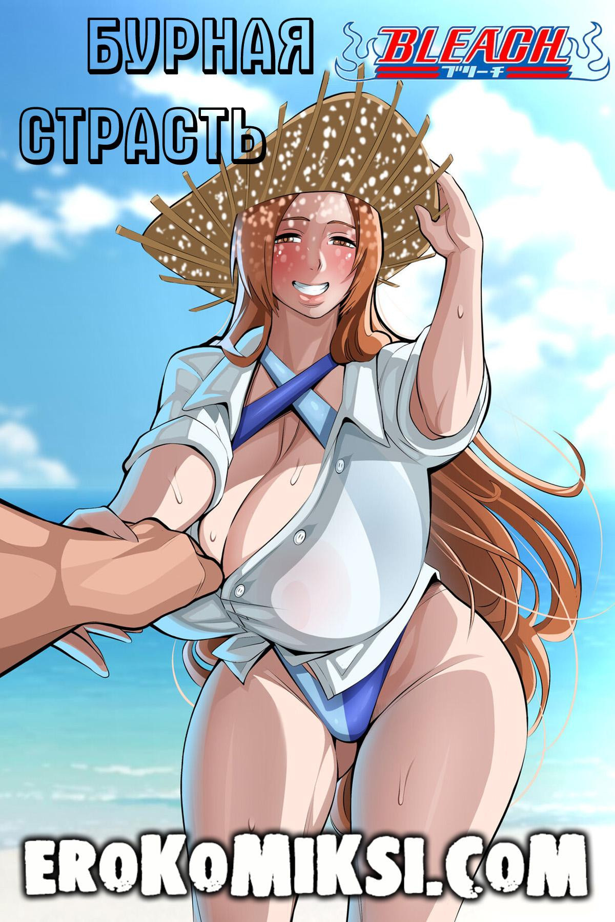 Порно комикс Bleach. Бурная Страсть. Орихиме и её муж Ичиго получили в подарок недельный отдых в домике на берегу океана. Весь пляж был в их полном распоряжении и вокруг не было ни одной души. Возлюбленные немного поплавали, поиграли в мяч, а затем решили, что можно воспользоваться уникальной возможностью и поразвлечься прямо на берегу. Они начали ласкать друг друга, Орихиме отсосала огромный член Ичиго, а парень в свою очередь вылизал её киску, а затем как следует оттрахал её…