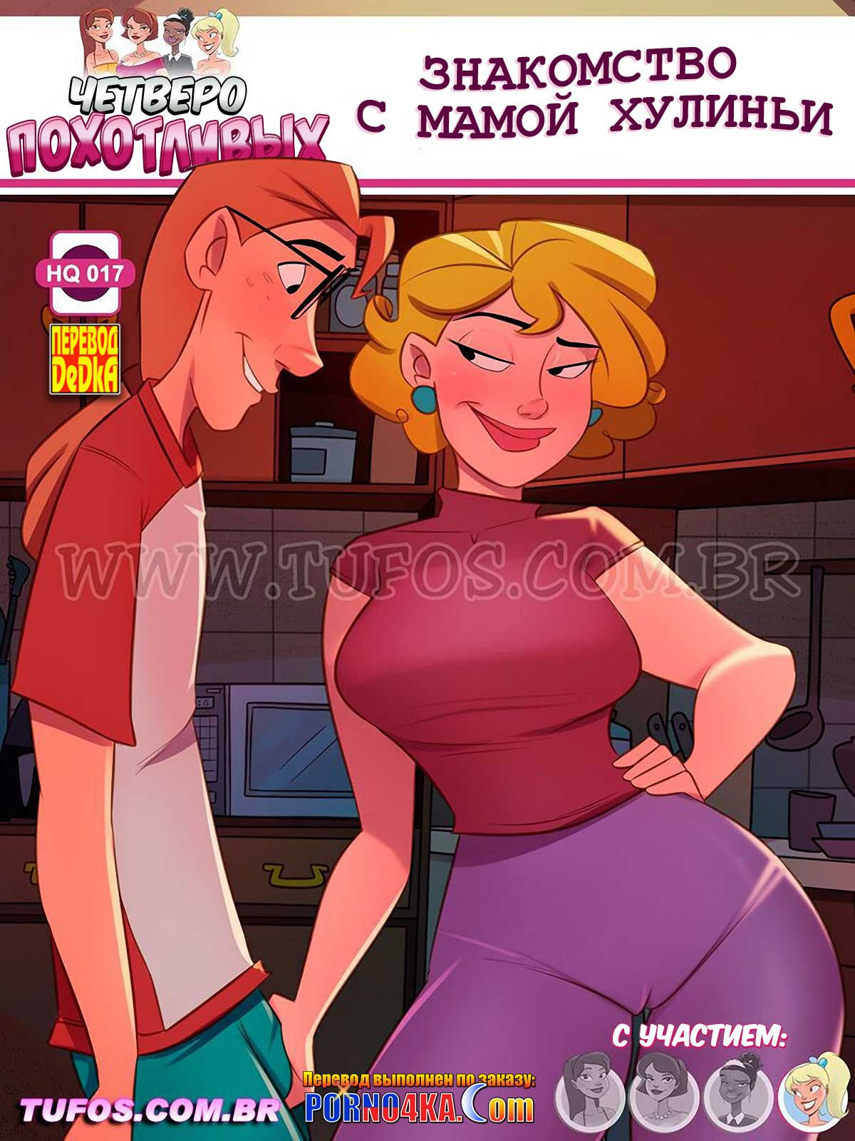 Порно комикс Четверо похотливых. Часть 17: Знакомство с мамой Хулиньи. Однажды утром в дверь дома похотливой семейки звонит красивая милфа… Карлиньос открывает дверь, не глядя на женщину, которая спрашивает о местонахождении ее дочери. Узнав, что это сеньора Жульета, мать Хулиньи, парень приходит в восторг и приглашает милфу в дом…