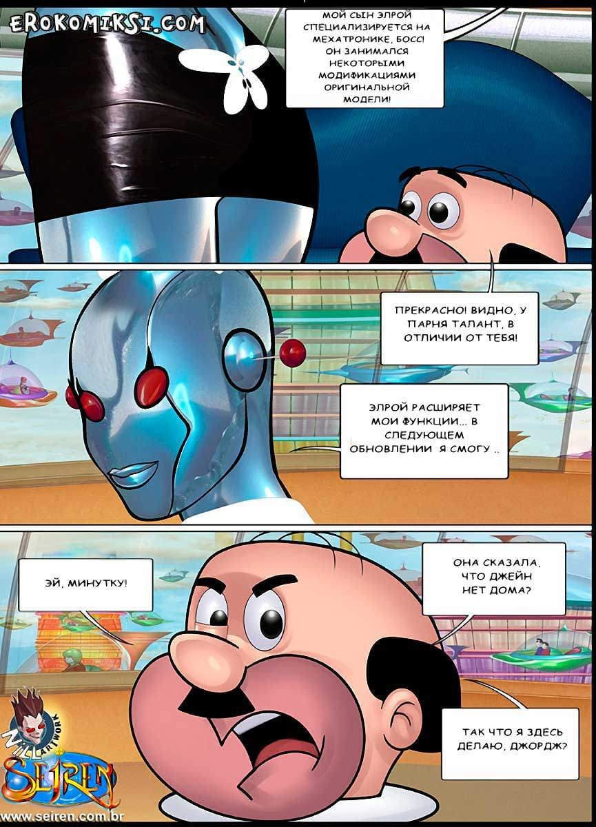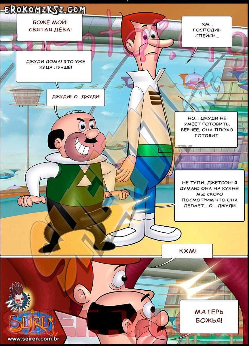Порно комикс Джетсоны является пошлой пародией на известный мультфильм. Так Мистер Спейси по приглашению Джорджа Джетсона пришёл к нему вечером на ужин. На самом деле, его интересовала Джейн, а не еда. Но робот-служанка сказала, что Джейн занята важным делом, и Спейси подумал, что Джейн нет дома, и решил уйти, но тут…