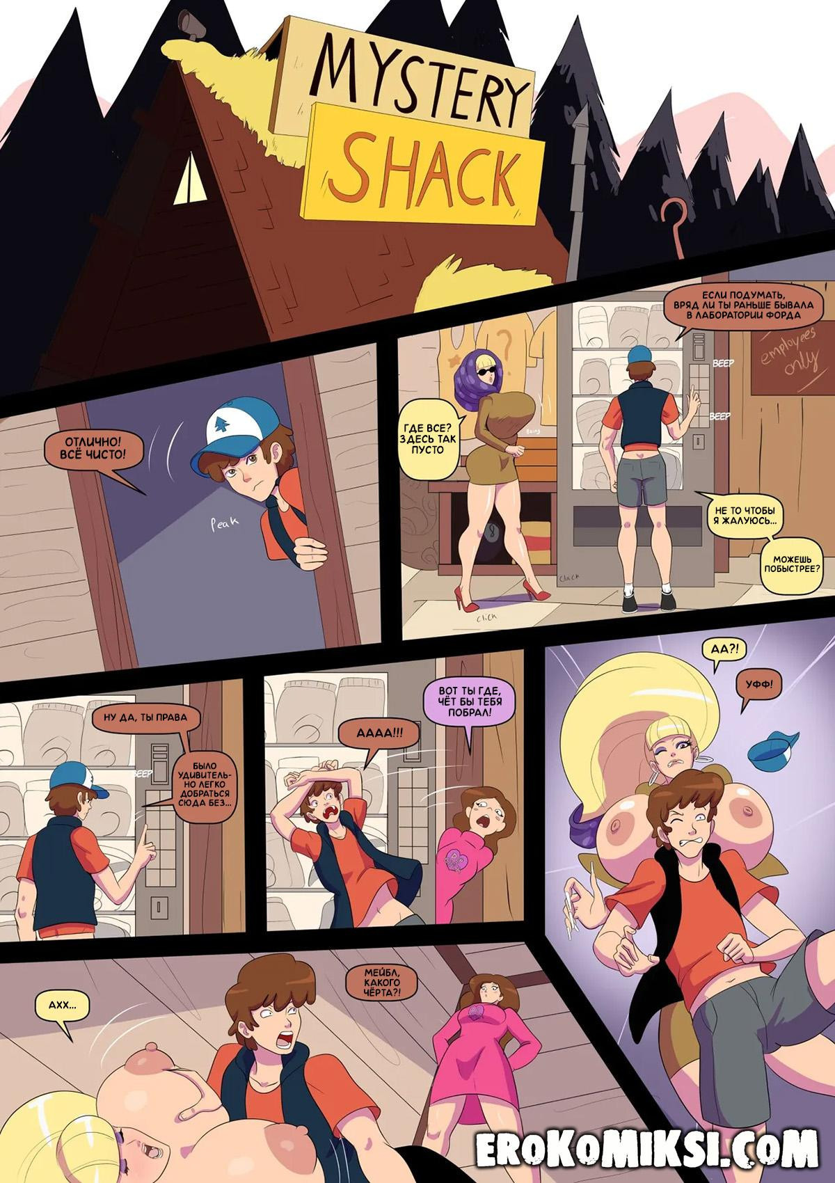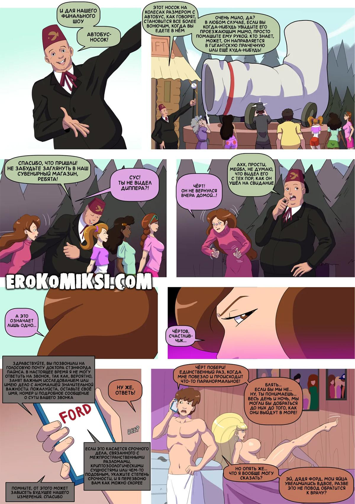 Порно комикс Гравити Фолз. Бимбо Фолз. Спустя много лет, Диппер и Мэйбл приезжают в Гравити Фолз на свадьбу Суса. Там Диппер встречает Пасифику, которая увеличила грудь, и приглашает её на свидание. Ночью, с Пасификой случаются метаморфозы и её грудь значительно увеличивается в размерах, она показывает свои изменения Дипперу, у которого сразу же встаёт член при виде огромных сисек…