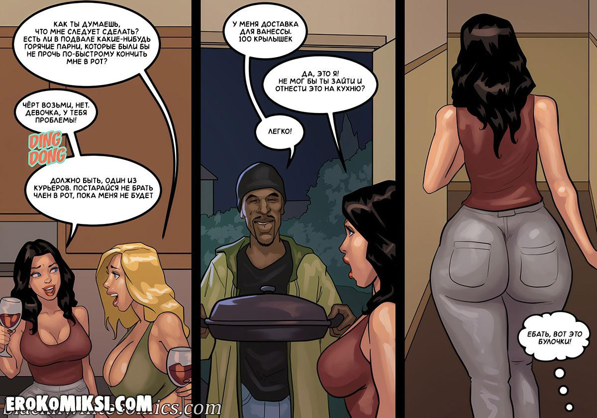 Порно комикс Игра в покер. Часть 4. Молодая озабоченная домохозяйка всю утро ждала почтальона и когда он наконец-то пришёл, она затащила его домой, чтобы как следует поразвлечься с его огромным чёрным членом, а чтобы ощущения были ещё пикантнее, она позволила своему муженьку куколду наблюдать за ними…