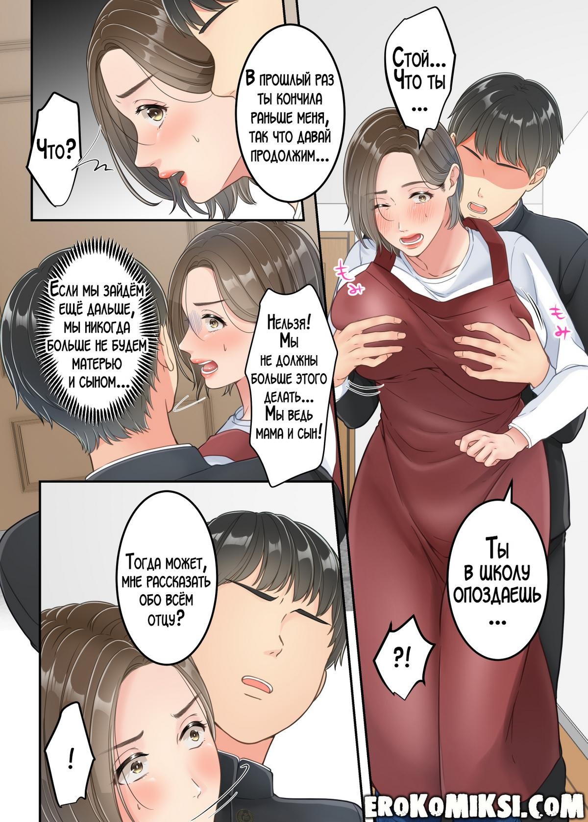 Порно комикс История о том, как сын наказал свою мать за измену! Сын вернулся домой пораньше и увидел как его мать изменяет отцу с незнакомцем. Вечером, пока отец был в ванной, он поставил мать перед выбором, либо он расскажет обо всём отцу, либо она начнёт утолять его сексуальные потребности!