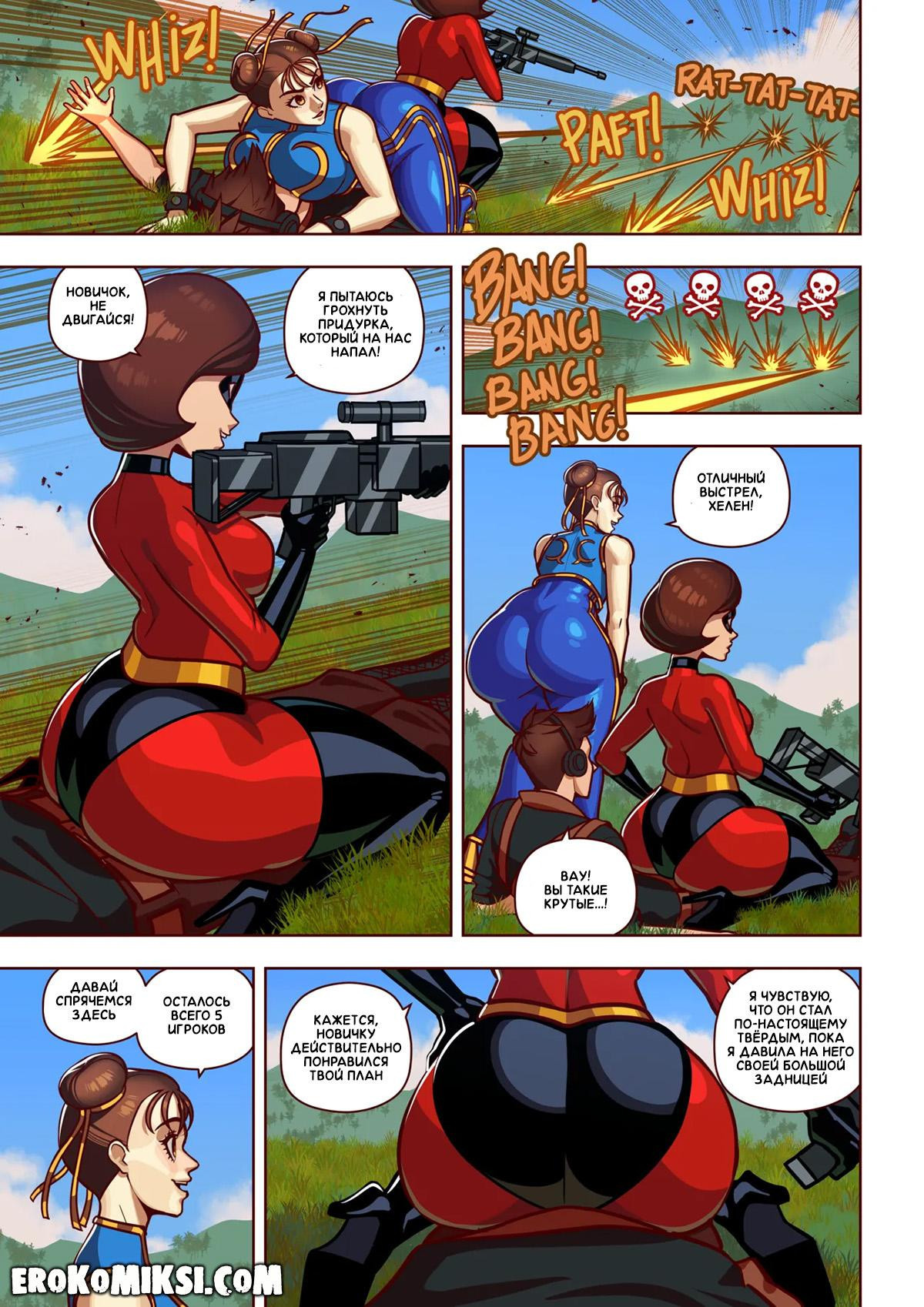 Порно комикс Fortnite. Королевская битва. Паренёк попадает в игру Fortnite и встречает там Эластику и Чун Ли. При виде сексуальных девчонок, паренёк сразу же возбуждается и девчонки это замечают, и решают немного повеселиться. Сперва, они отсасываю пареньку, а затем дают ка следует оттрахать свои тугие киски.