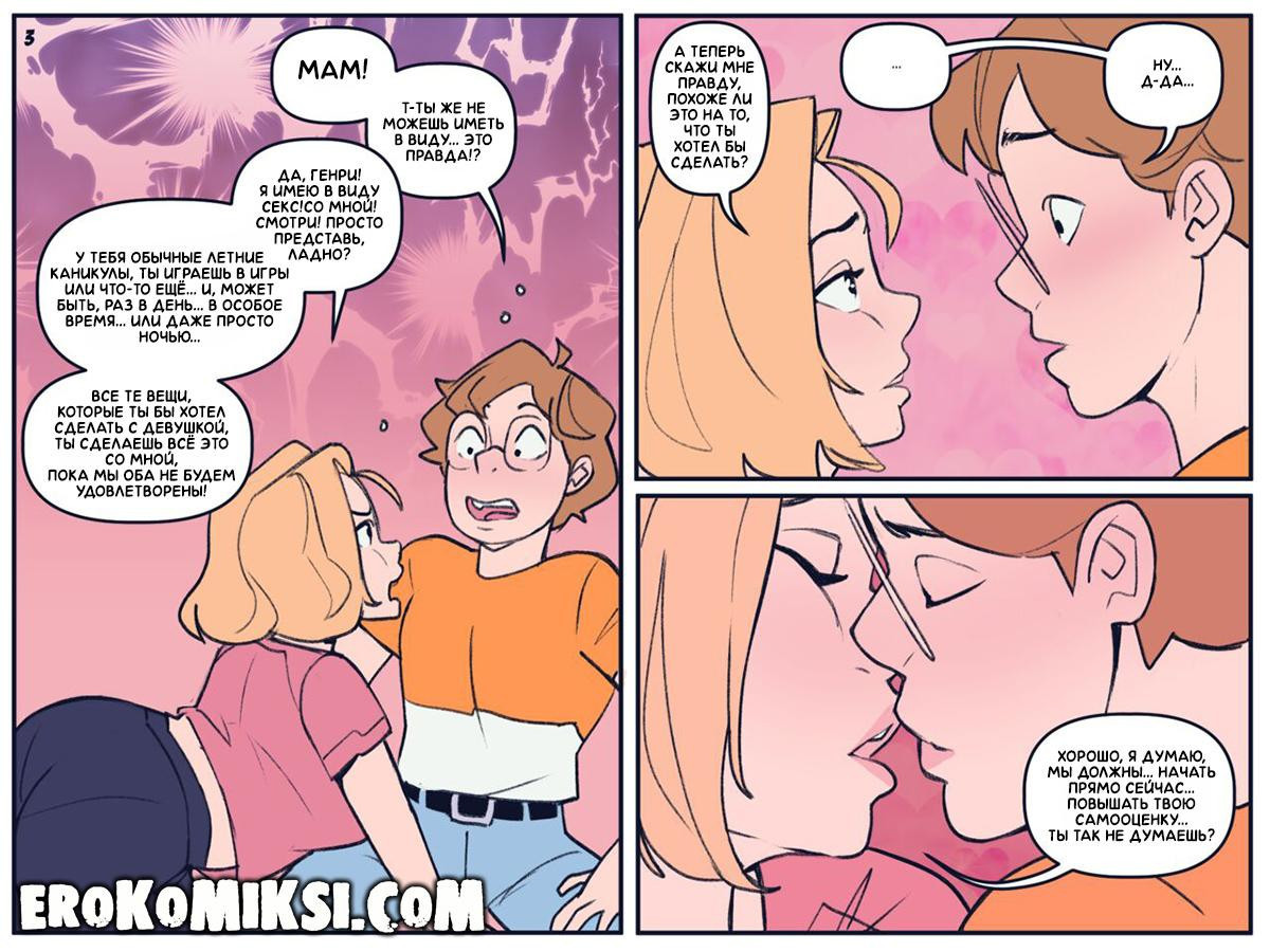 Порно комикс Лето с Мамой. Генри возвращается на летние каникулы домой, к своей маме, которая очень соскучилась по сыночку и расспрашивает его о жизни в колледже. Генри жалуется, что ему очень трудно найти там девушку и никто не хочет с ним встречаться. Мамашке стало жалко своего сынулю и она решила его развеселить и заняться сексом. Паренёк сначала не поверил своему счастью, а затем как следует трахнул мамашу и наполнил её кмску горячей спермой…