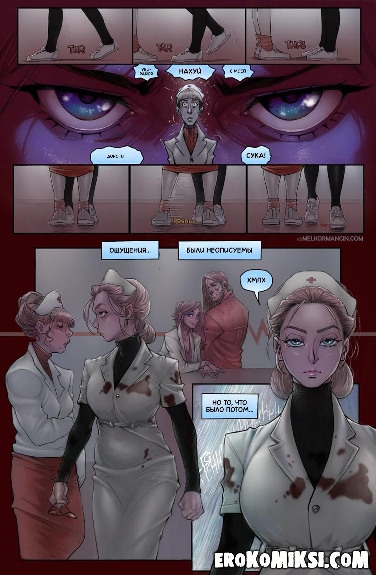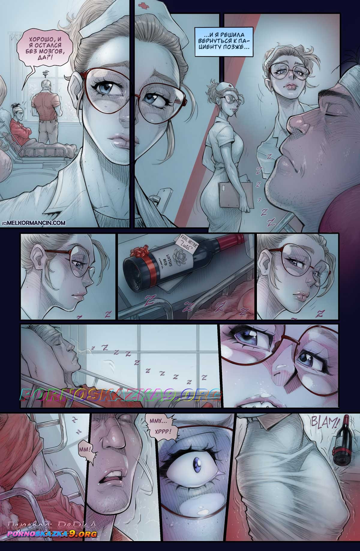 Порно комикс Медсестра Морган. Девушка по имени Морган трудится медсестрой. Она обожает свою работу. Но бывает на этой работе происходит такое, о чем хочется обязательно, хоть кому-нибудь все рассказать, а даже точнее — выговориться, либо на месте не усидишь! И таким внимательным собеседником, которому можно излить всю душу, оказался для Морган ее дневник, так называемый своеобразный журнал медсестры, в котором девушка и описывает все прелести своей нелегкой работы…