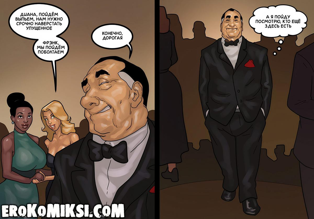 Порно комикс Мэр. Часть 6. Похождения мэра Уайта продолжаются. На этот раз, находясь на светском мероприятии, приуроченном к Рождеству, у Уайта начинают течь слюни, ведь все дамы на этом мероприятии выглядят просто потрясающе и озабоченный мэр уже думает, в чью бы киску поскорее присунуть свой огромный член…