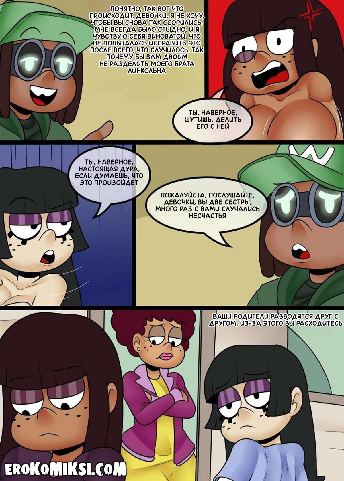 Порно комикс Мой Шумный Дом. Сюрприз. Две сестры, Бриттани и Мэгги, которые находятся в натянутых отношениях друг с другом, пришли к Линкольну поиграть в приставку. Каждая из девушек тайно была влюблена в Линка и хотела его трахнуть. В итоге, девчонки решили не делить парня, а помириться и устроить ему весёлую групповушку, чтобы он трахнул их обеих…