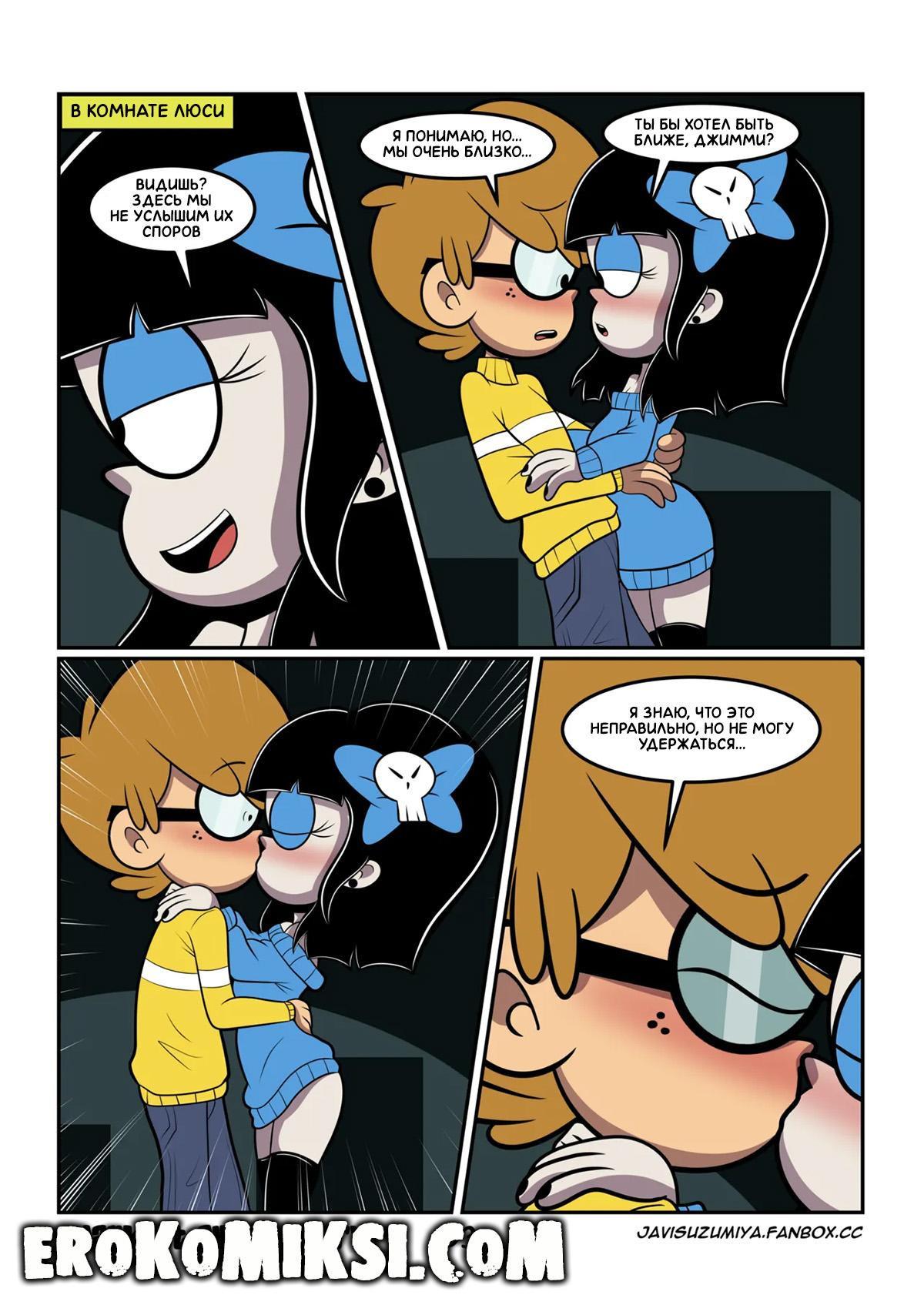 Порно комикс Мой шумный дом. Весёлое Рождество. Пока мать Люси и отец её кузена Джимми ссорились, Люси решила воспользоваться ситуацией и затащила Джимми в свою комнату, где сняла с себя трусики и встала раком, чтобы кузен как следует её оттрахал…
