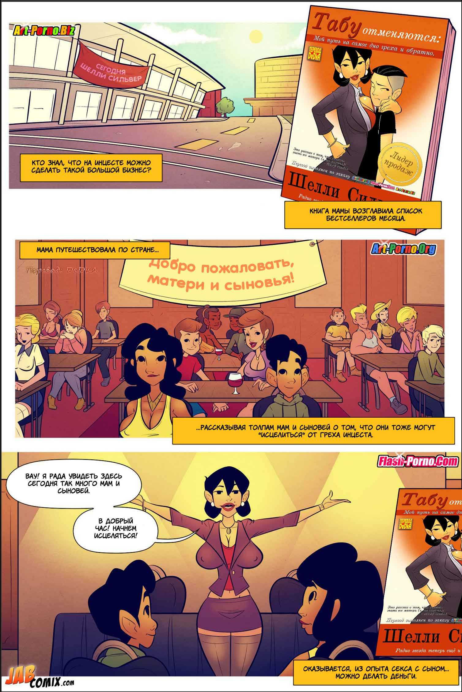 Представляем откровенные порно комиксы, где мать, известная нам по прошлой истории под именем Шелли Сильвер будет главной героиней. Как вы помните эта женщина была успешной радио звездой. Но на сей раз, зрелая леди захотела расширить сферу своей своеобразной деятельности. Шелли опубликовала свою авторскую книгу, название которой звучало так: Табу отменяются: Мой путь на самое дно греха и обратно. Данное произведение было снабжено большим количеством подробных картинок. Книга сразу стала самым популярным бестселлером месяца. Заработав такой успех Шелли Сильвер, берет своего выросшего сына, и едет в турне по стране, чтобы поиметь еще больше бабла, читая свои лекции, ведь публика готова была платить любые деньги за такое шоу!