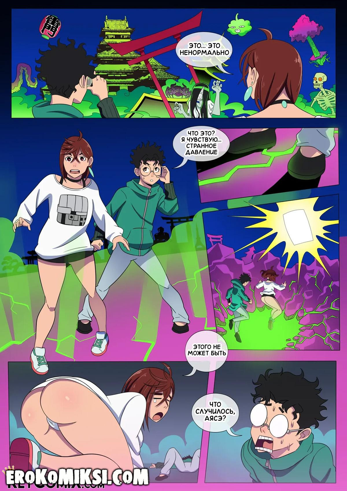 Порно комикс DanDaDan. Накопившаяся энергия. Момо и Окарун вновь сражаются с призраками, и Момо решает закрыть портал, чтобы предотвратить нашествие духов, но ей нужна помощь парня, чтобы он крепко её держал. Окарун схватил Момо за талию и сильно прижал её к себе, однако, в этот момент задница Момо прижалась к паху парня, от чего у него естественно встал член…