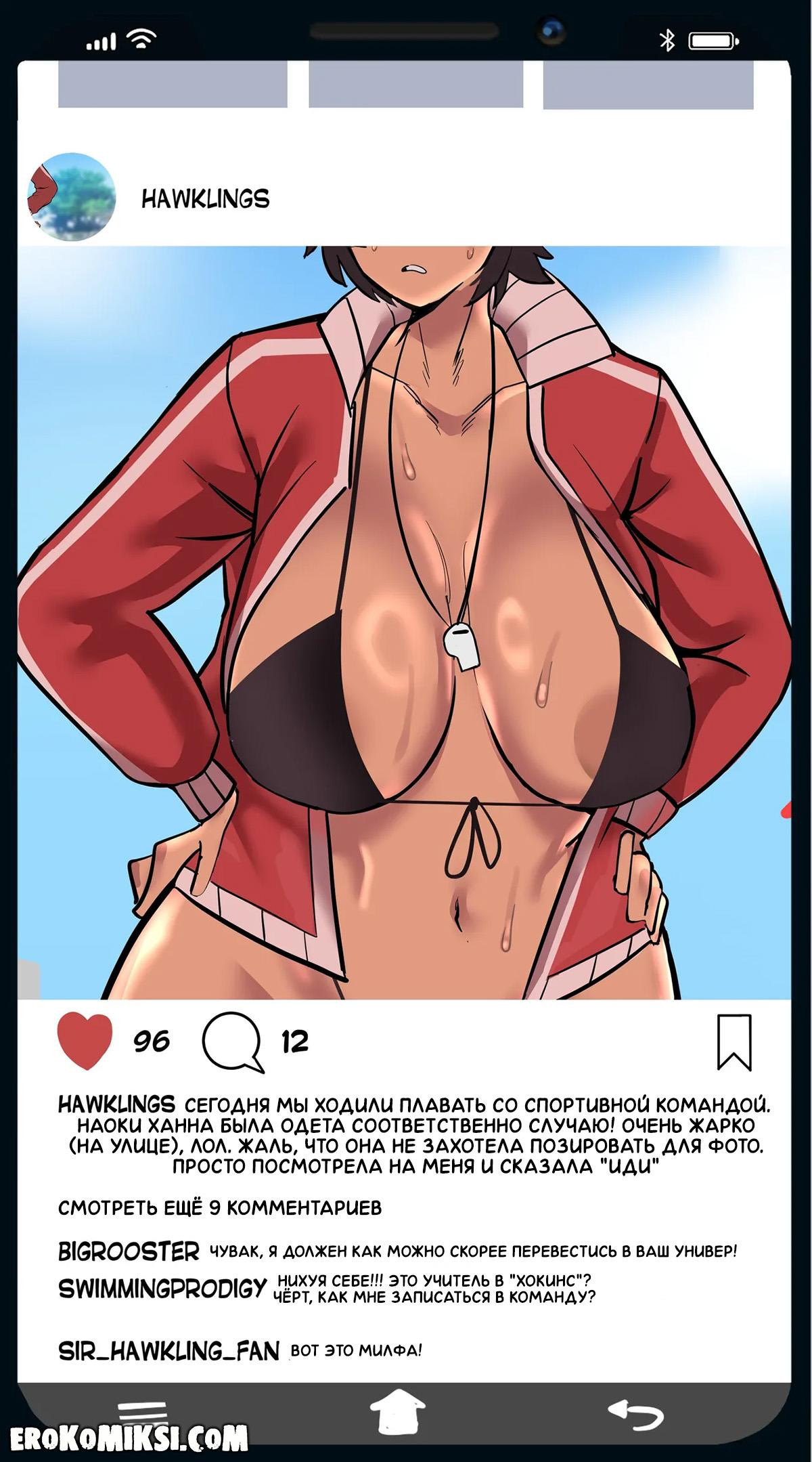 Порно комикс Наоки Ханна – учитель года. Ханна бывшая пловчиха, которая теперь преподаёт в университете, и с появлением Ханны, спрос на занятия плаванием резко вырос, ведь Ханна довольно горячая милфа с огромными сиськами и задницей, и все парни мечтают побольше времени проводить рядом с аппетитной мамочкой…