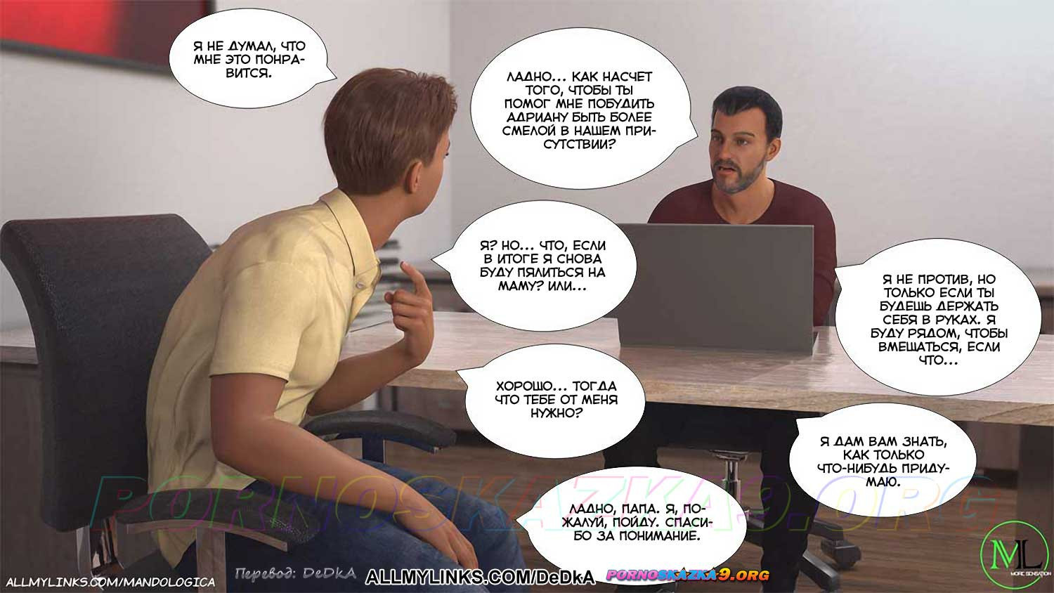 Порно комикс Нарушая границы. Часть 10. Уильям все больше втягивается в сложную игру с заданиями от организации, с которой сотрудничает Лукас, но он и понятия не имеет, что Лукас ловко манипулирует им, как и Адрианой…