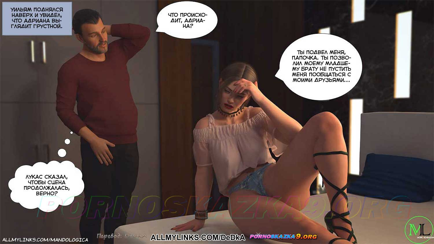 Порно комикс Нарушая границы. Часть 11. Лукас встревожен тем, что скоро приезжает Лора, которая будет жить у них некоторое время. Это поставит на паузу все семейные забава, которые только набирают обороты…