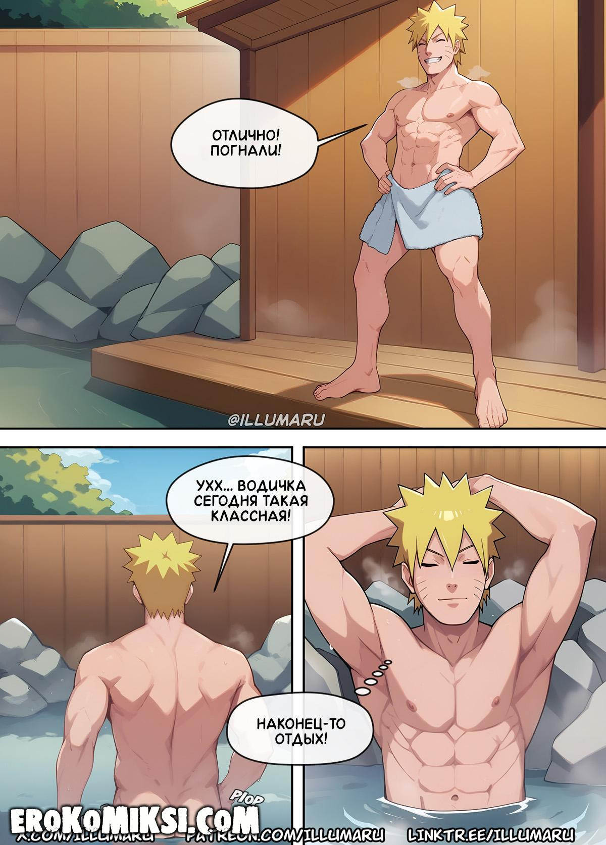 Порно комикс Наруто. Горячие источники Конохи. Часть 1 и 2. У Наруто был выходной и он не знал чем заняться, и решил отправиться в горячие источники. Отдыхая около тёплой водички, Наруто понял, что перепутал мужские и женские купели, так как там появилась Цунаде. Увидев Наруто, Цунаде крайне обрадовалась парню, так как ей хотелось немного поразвлечься и огромный член Наруто был как нельзя кстати…