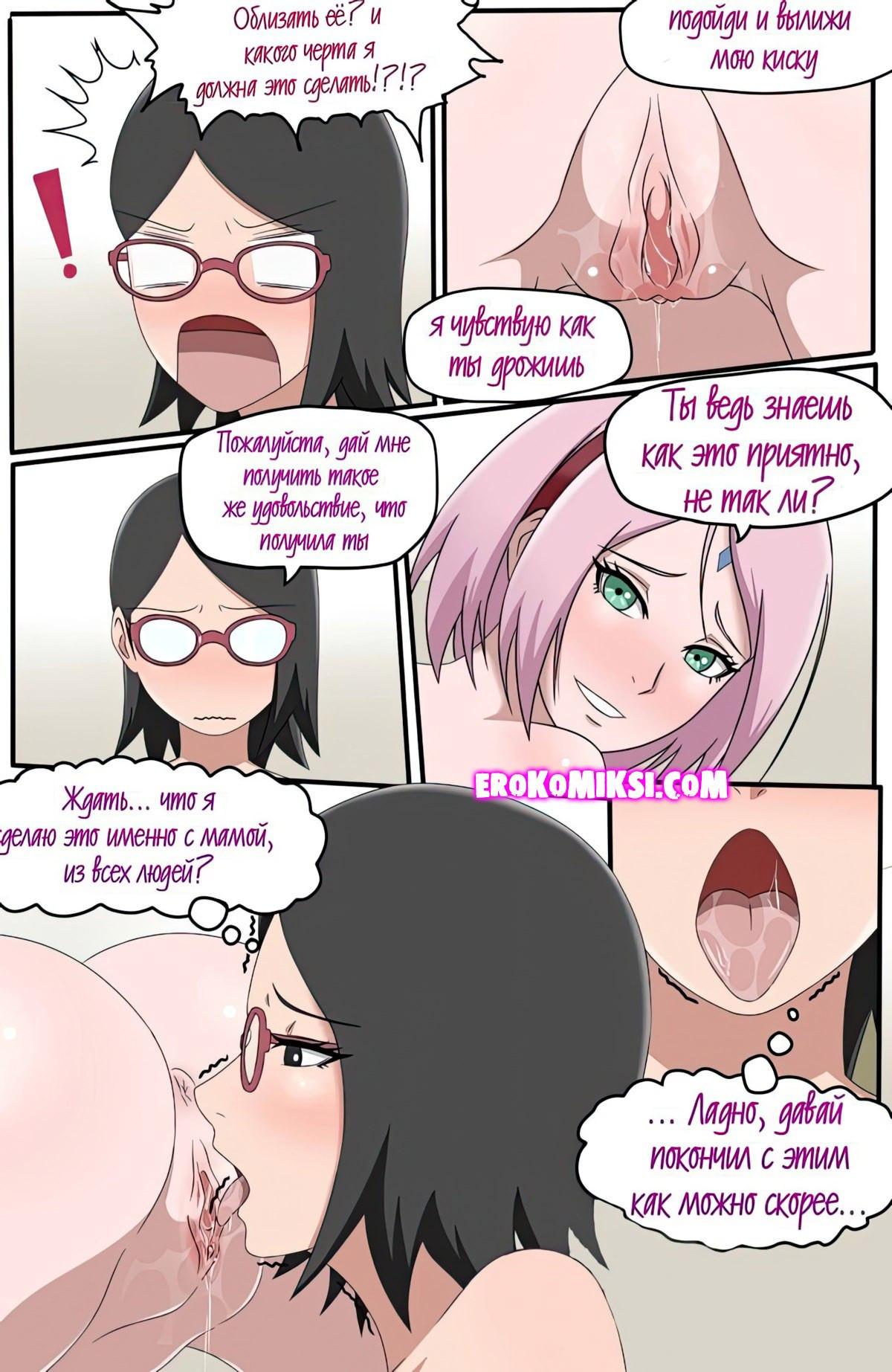 Порно комикс Наруто. Материнское прикосновение. Сакура думала что Сарада вернётся домой поздно и принялась мастурбировать, но дочь вернулась раньше. Она застала мать за этим и удивилась, ведь Сарада не знает ещё ничего об этом. Поэтому Сакура решила обучить дочь…