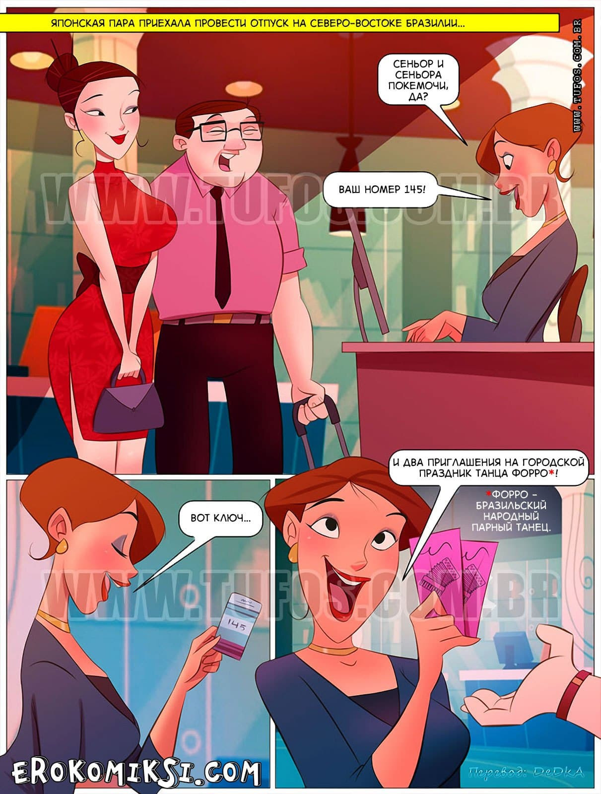 Порно комикс Негритос Пиконе. Часть 4: Горячий бразильский танец. Порно комиксы Туфос представляют 4 часть приключении, Негритоса Пиконе. Так богатая семейная пара из Японии приехала на северо-восток Бразилии, чтобы познакомиться с тамошней культурой. На городском празднике танца японца окрутили местные шлюхи, увели его в бар и в два счёта пропили все его деньги. А в это время оставшаяся без присмотра японка случайно напоролась на… огромный член негритоса Пиконе. Всеми дырами по очереди… Ну, так совсем, случайно получилось у неё. В общем, познакомились японцы с культурой…