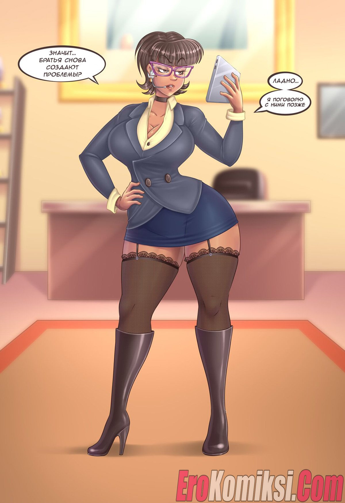 Порно комикс Очень важная встреча. Директора компании заботит вопрос о своих подчинённых. Она почти всегда ставит их проблемы на первое место. Однако ей приходится курировать все дела фирмы. И когда заботы берут над ней верх и сил на работу уже не остаётся, сексапильной женщине требуется разрядка. Так она справляет свою физическую потребность, при приёме на работу новых сотрудников, особенно когда речь идёт о парнях с большими толстыми членами…