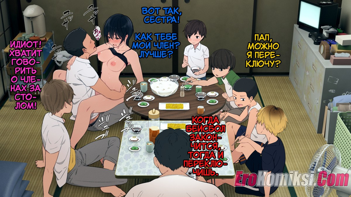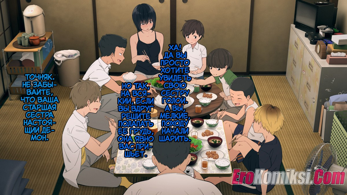 Порно комикс Огромная семья поведает о семье Осуги, в которой 6 парней и одна двушка. Старшей сестре приходится отвечать за порядок в доме и воспитание младших братьев, ведь матери уже давно нет в живых, а отцу приходится работать, чтобы хоть как-то содержать большую семью. Мешает и то, что братья совсем не ладят друг с другом, вечно дерутся и ссорятся. Кто знает, возможно у старшей сестры есть то, что сможет наладить отношение в семье.
