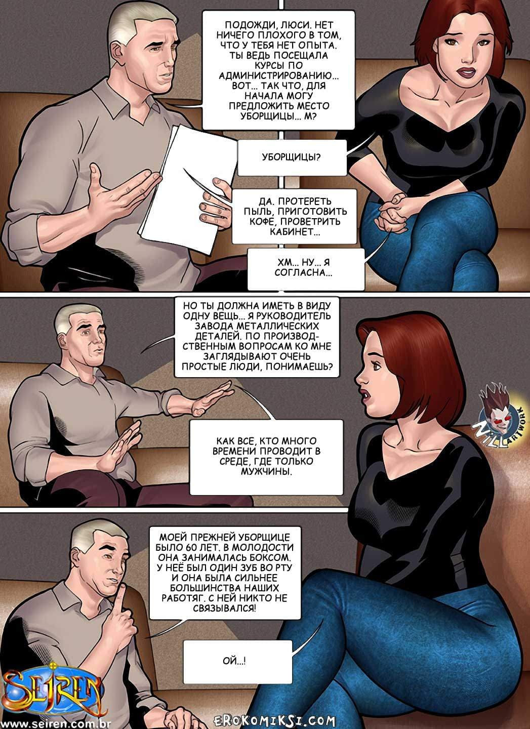 Пошлые комиксы секс содержания продолжаются! Так Анна и Артур целомудренно беседуют на скамеечке и выясняют свои отношения. А в это время две зрелые дамы в две, а то и в три тяги получают от специально нанятых мужчин удовольствие на вечеринке, организованной по случаю дня рождения их безбашенной подруги. А отец Анны напряжённо ищет способ, как ему взять к себе на работу девушку, у которой совсем нет опыта, но зато есть очень аппетитная задница.