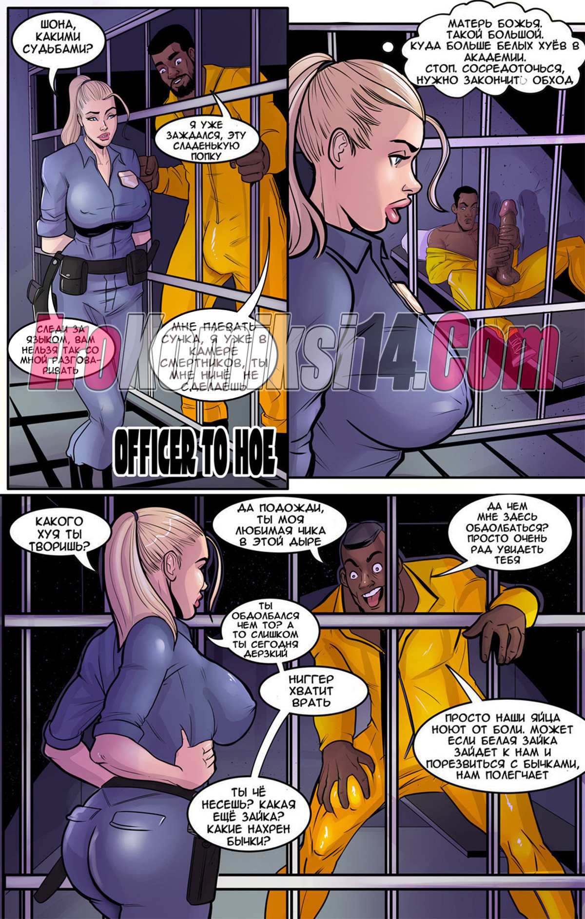 Порно комикс Охранница. JohnPersons. Блондинка с большими сиськам работает охранником в тюрьме. Она увидела огромные черные хуи и даже не знала, что ее подставили под огромные члены, томящиеся по ней.