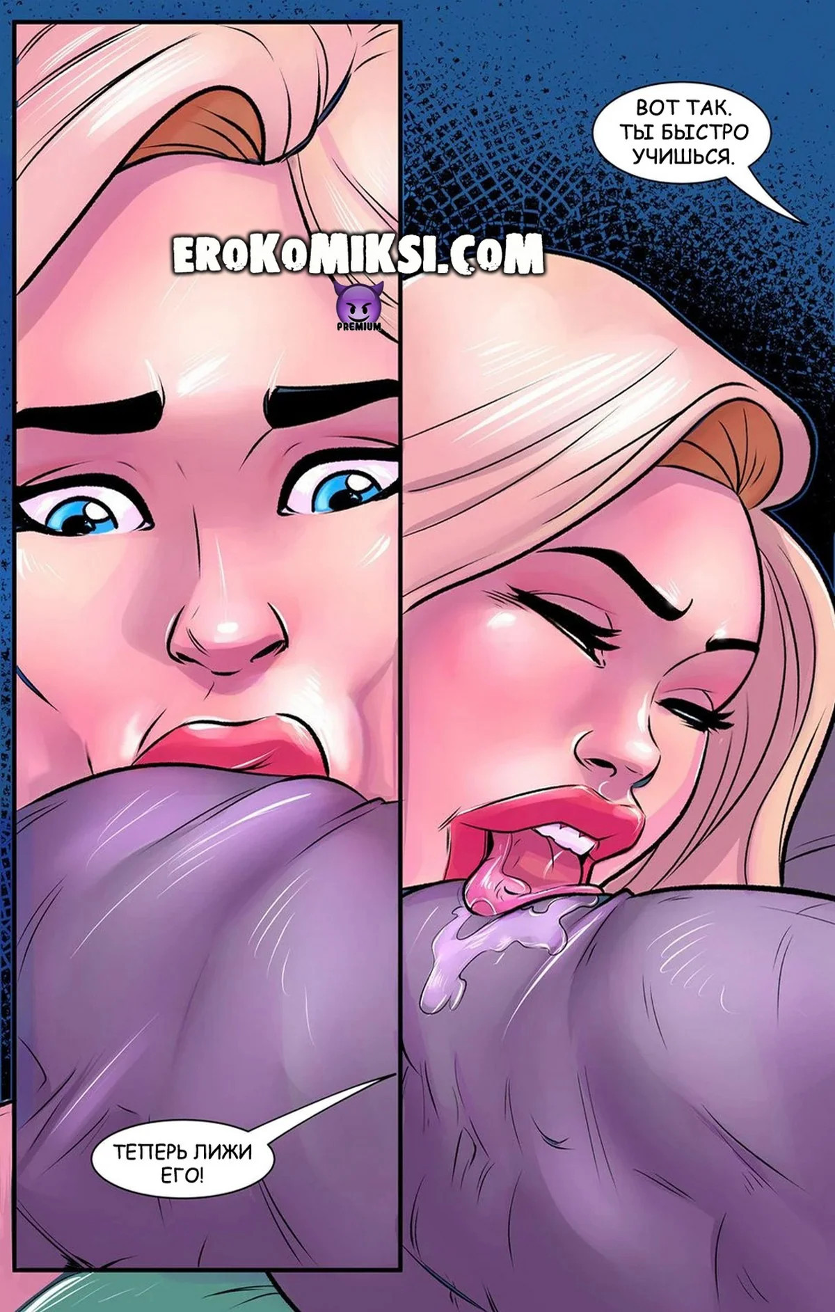 Порно комикс Охранница. JohnPersons. Блондинка с большими сиськам работает охранником в тюрьме. Она увидела огромные черные хуи и даже не знала, что ее подставили под огромные члены, томящиеся по ней.