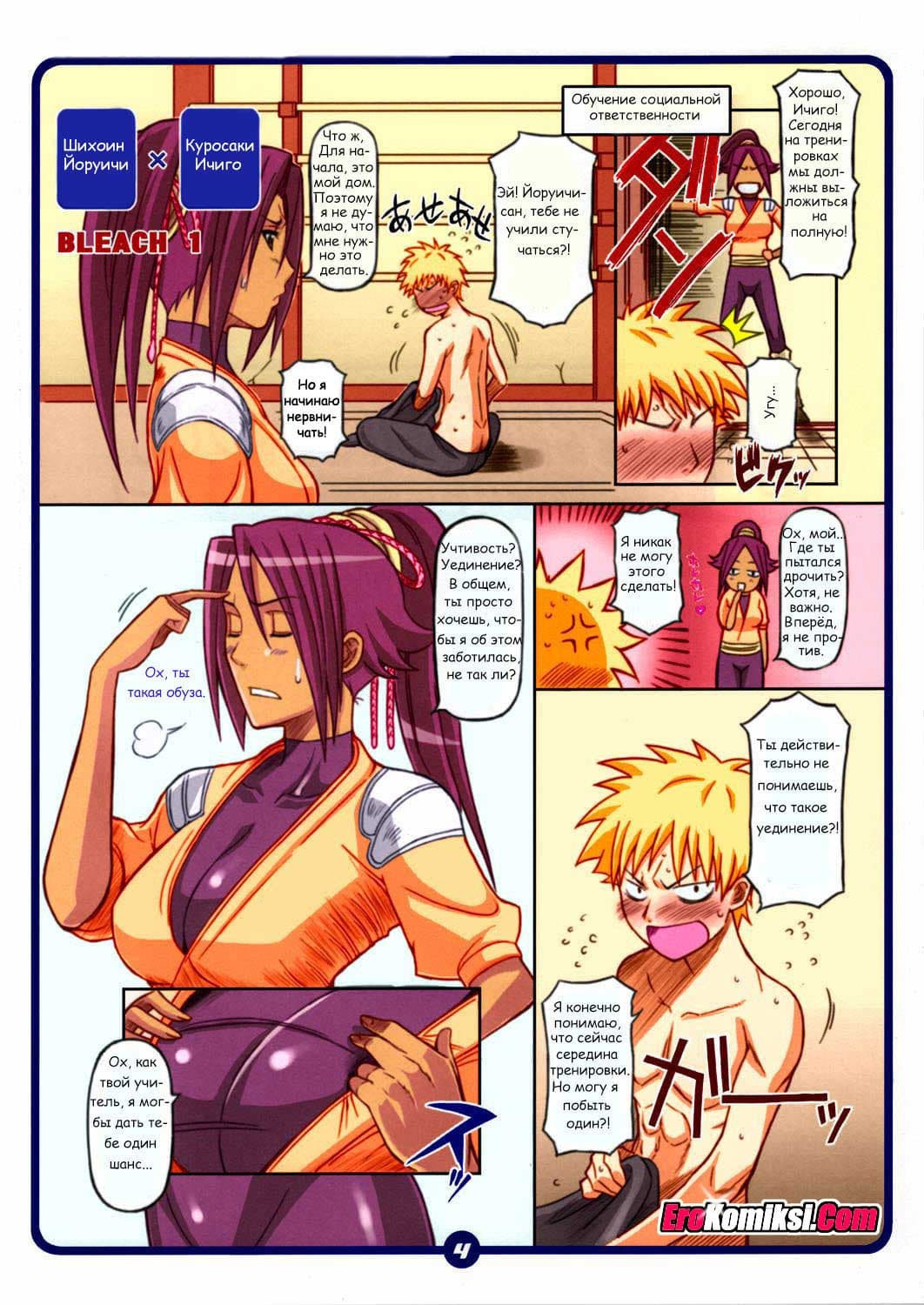Посреди тренировки горячий японский парень, Ичиго, почувствовал, что настал тот момент, когда для восстановления душевного равновесия ему нужно немедленно уединиться, помедитировать и… вздрочнуть. Однако его уединение в самый неподходящий момент было прервано внезапным появлением учителя, а точнее, учительницы…
