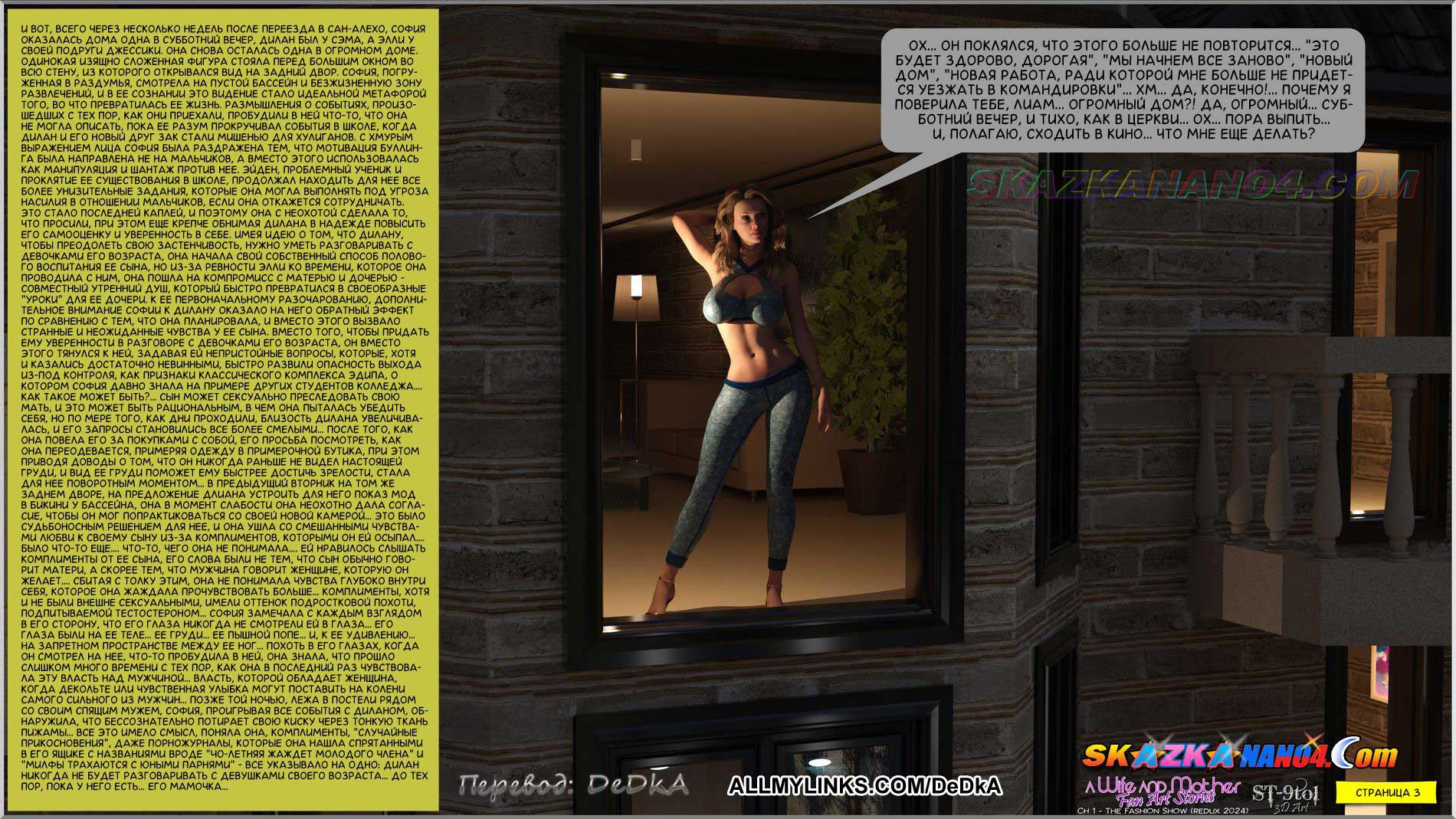 Порно комикс Падение Софии. Часть 1: Показ мод. Расширенная версия. Для тех, кого заинтересовала краткая версия этого комикса, предлагаем подробный рассказ о том, как Дилан пытается уговорить Софию еще раз устроить показ мод купальников, но на этот раз не для него одного, а еще и для его друга Сэма… Дилан и его друг, Сэм, не питают больших надежд на то, что им удастся уговорить Софию сыграть для них роль известной модели нижнего белья, Скарлет, и устроить для них шоу с демонстрацией бикини. Каково же было их удивление, когда София согласилась на это, что называется, с полуслова. Почему же она так быстро согласилась?