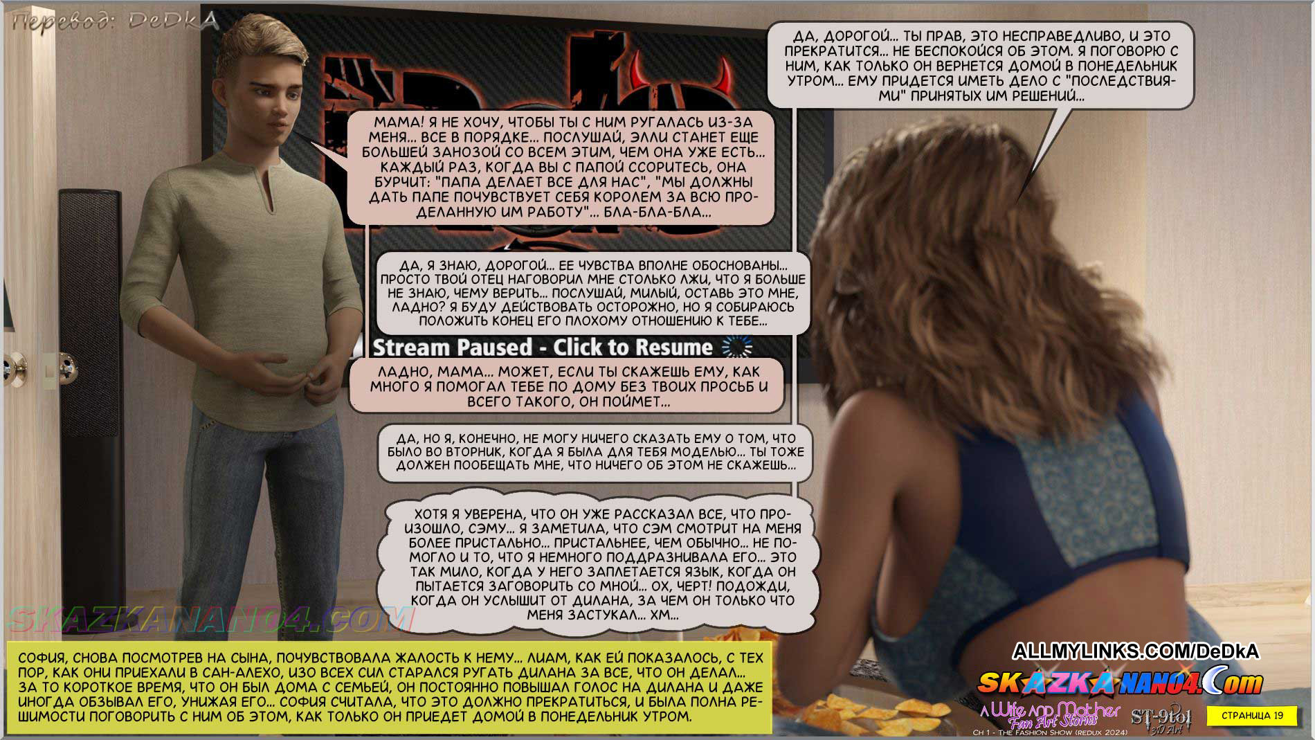 Порно комикс Падение Софии. Часть 1: Показ мод. Расширенная версия. Для тех, кого заинтересовала краткая версия этого комикса, предлагаем подробный рассказ о том, как Дилан пытается уговорить Софию еще раз устроить показ мод купальников, но на этот раз не для него одного, а еще и для его друга Сэма… Дилан и его друг, Сэм, не питают больших надежд на то, что им удастся уговорить Софию сыграть для них роль известной модели нижнего белья, Скарлет, и устроить для них шоу с демонстрацией бикини. Каково же было их удивление, когда София согласилась на это, что называется, с полуслова. Почему же она так быстро согласилась?
