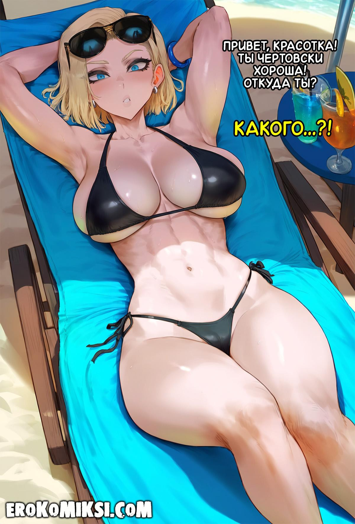 Порно комикс DragonBall Z. Поездка в Америку. Андроид вместе с мужем отправились в отпуск в Америку, и первым делом пошли на пляж, где на красотку сразу же обратили внимание 2 нигера и предложили провести ей экскурсию, на что она с радостью согласилась, и как итог, парни как следует оттрахали сисястую Андроид своими огромными членами…