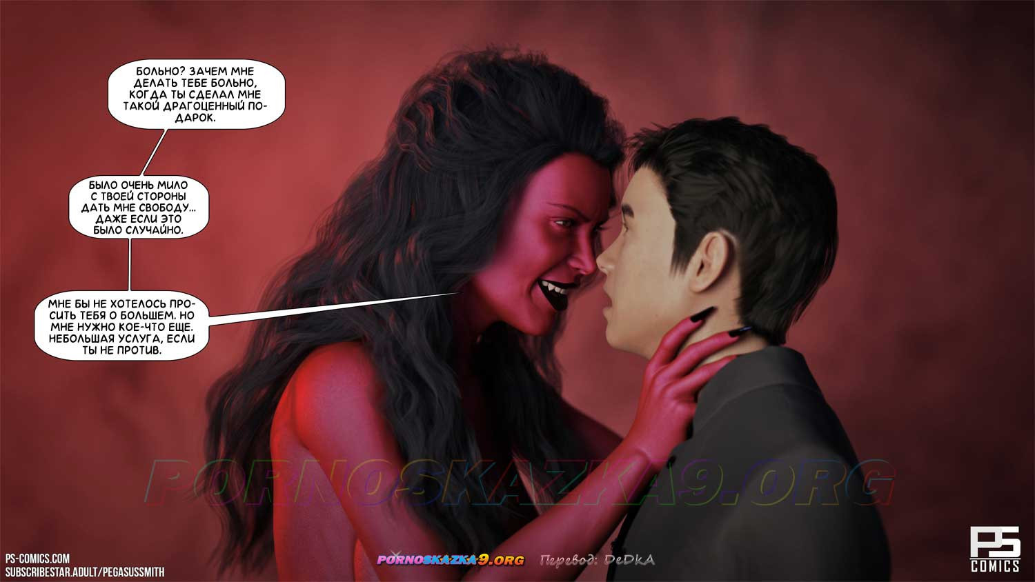Порно комикс Проклятие суккуба. Дьяволица Элара много веков заперта под землей. Сильная и красивая, она ждет во тьме, когда ничего не подозревающий мужчина наткнется на ее могилу, чтобы она могла затуманить его разум и использовать его для бегства из своего заключения… Жуть!