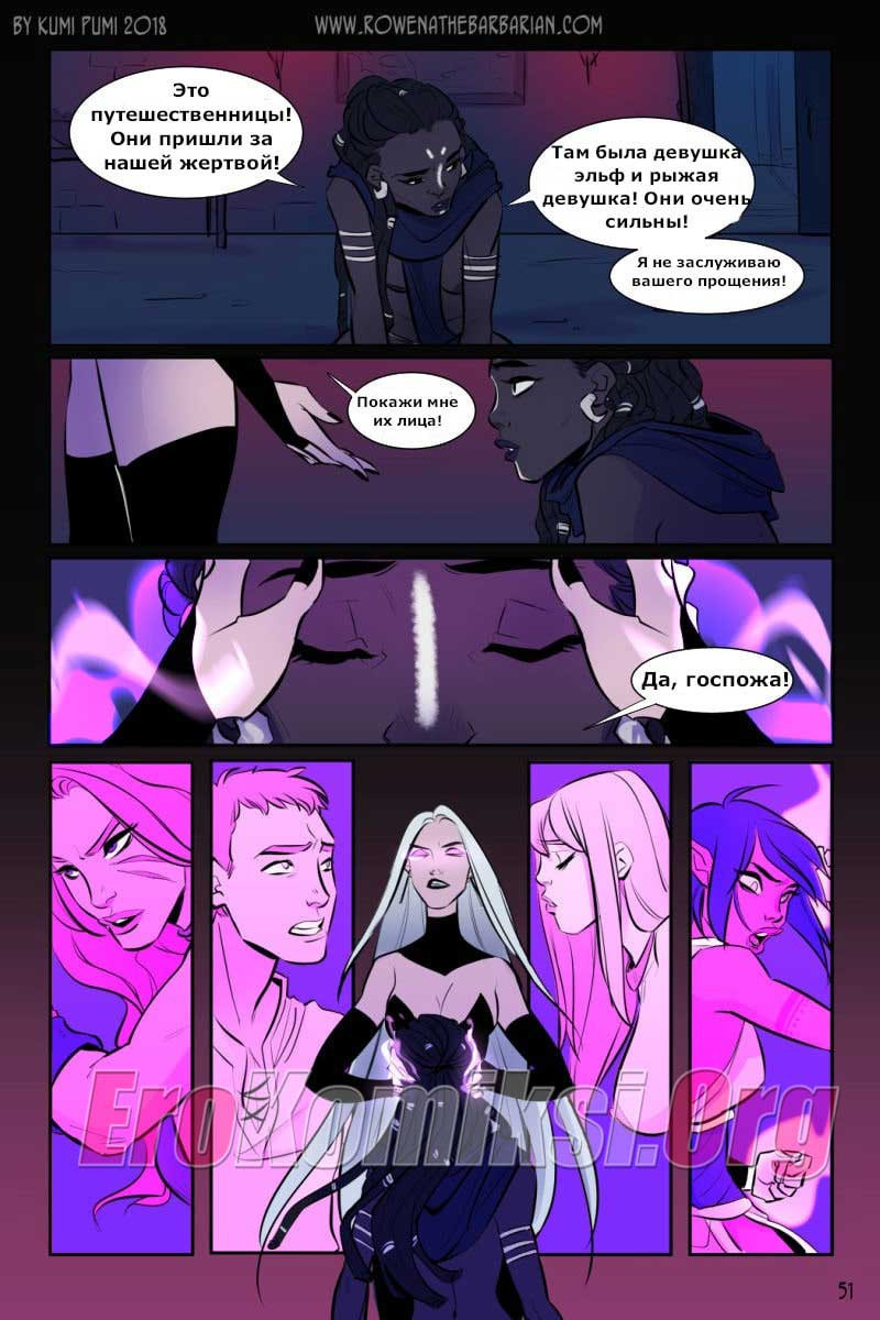 Порно комикс пародия «Ровена Варвар» расскажет вам о том, как две сексуальные путешественницы встретили в таверне мужчину, который просил помощи, т.к неизвестные похитили его сестру. Девушки согласились помочь. Найдя в лесу пленницу, они увидели, что девушка привязана к камню и над ней хотят совершить обряд. Извне появился демон с большим членом и решил лишить девушку девственности. Тут и началась битва, сопряженная с насилием, сексом и обильным развратом…