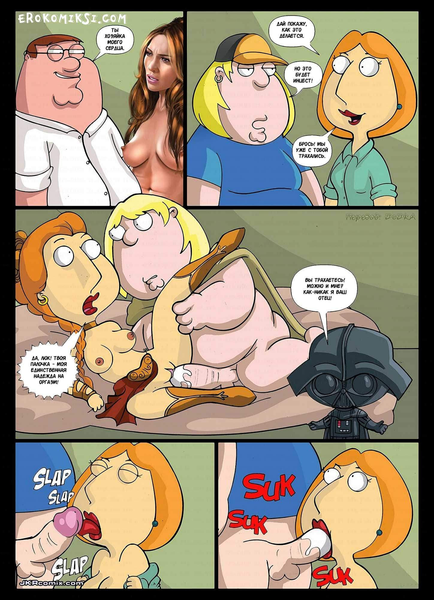 Порно комикс Семейный пирог расскажет историю о том, что Лоис едва не впала в депрессию от горя, когда Питер принёс домой картонную любовницу. Ладно бы резиновую, а то картонную! Расстроенная такой оскорбительной изменой мужа, Лоис пожаловалась в жилетку соседу, и у того появилась идея! Он решил утешить несчастную соседку…