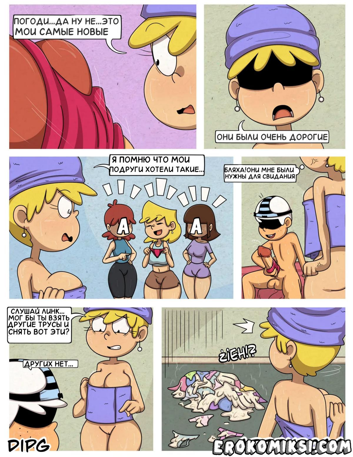 Порно комикс Шумный дом. Сексуальные инстинкты. Часть 2. Sexual Instincts. Greendog Блондинка намылась в душе перед походом на вечеринку, но когда она пришла в свою комнату, обнаружила что все ее трусики залиты спермой ее брата извращенца. Теперь у нее ни одних чистых трусиков…