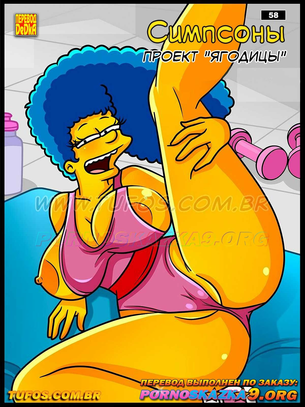 Порно комикс Симпсоны. Часть 58: Проект «Ягодицы». Мардж отправилась по совету Лизы в тренажерный зал, чтобы привести свое тело в форму. Там ей занялся лично тренер, который на пару со своим другом трахнул милфу во все дырочки.