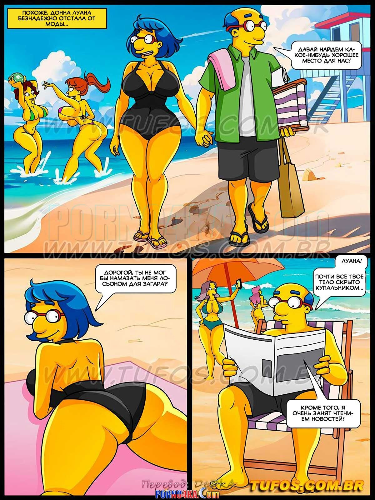 Порно комикс Симпсоны. Часть 65: В Спрингфилде есть пляж. В Спрингфилде жаркий солнечный день и местные жители отправляются отдыхать на пляж… Нильсон и Милхаус сразу идут купаться, а Барт предпочитает остаться на берегу и любоваться красотками в бикини…