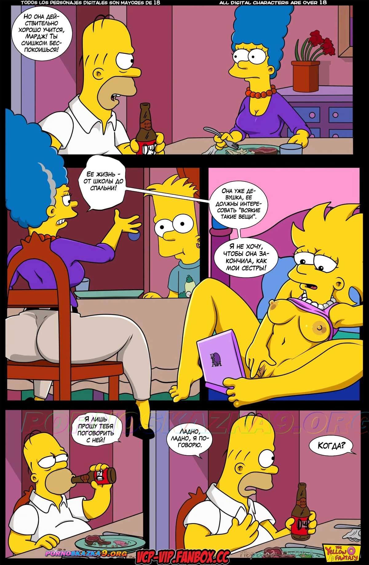 Порно комикс Симпсоны. Желтая Фантазия. Уединение. Мардж обеспокоена тем, что Лиза никуда не выходит, у нее нет друзей, она почти не ест, почти не спит, в ее жизни есть только учеба и спальня, а она уже взрослая девушка и ее должно интересовать то, что интересует девушек ее возраста. Решив узнать в чем дело, Мардж просит Гомера поговорить с Лизой и выяснить, что происходит с Лизой…