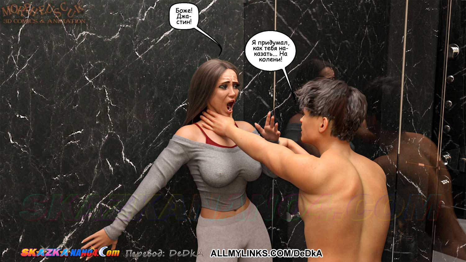 Порно комикс Соседи. Часть 14. Пока Аманда обдумывает, как ей справиться со сложившейся ситуацией, Джастин решает жестоко наказать Кейт за то, что она ворвалась в комнату, где он трахал Аманду. Вот только способ наказания Джастин выбрал неудачно. Он решил жестко трахнуть Кейт в задницу, но… какое же это наказание для такой сучки, как Кейт?
