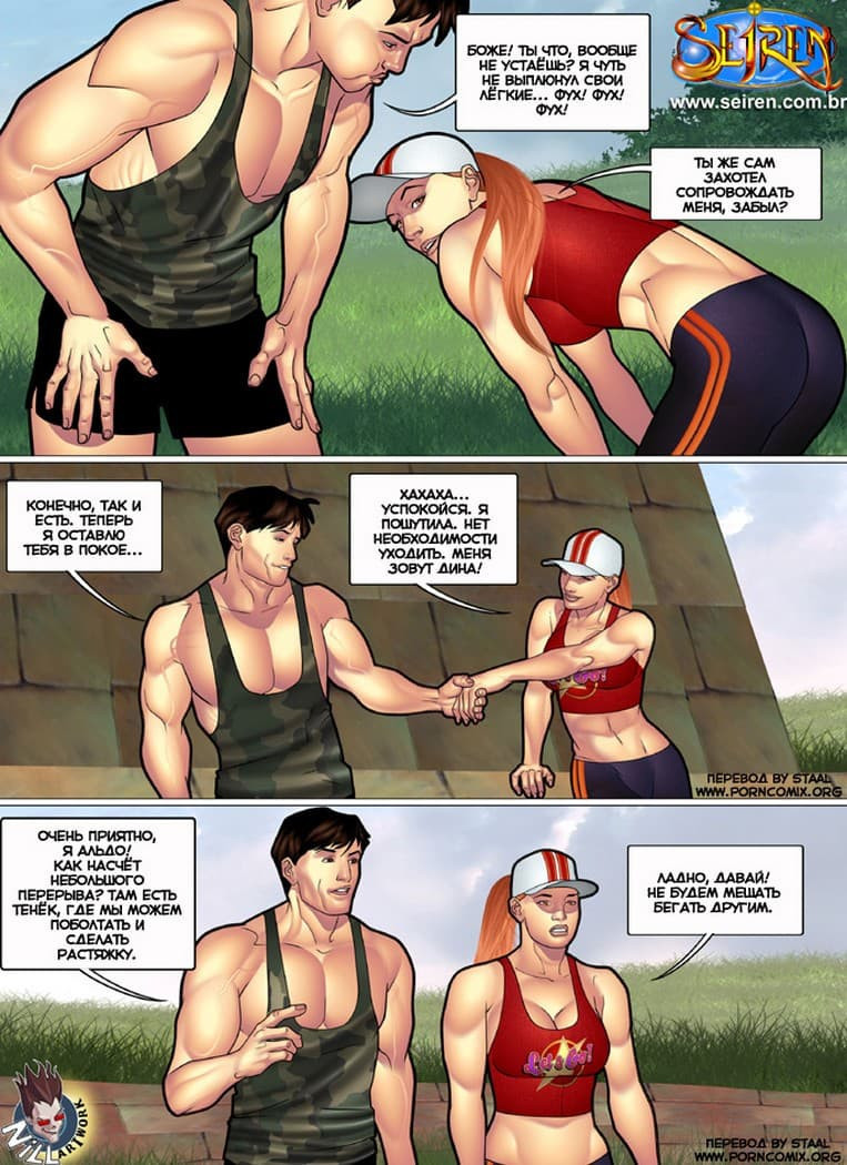 Порно комикс Спортсменка покажет дальнейшие сексуальные моменты из жизни Дины. Так наша героиня была совсем расстроена из-за полного отсутствия внимания со стороны любимого мужа Эвалдо. Прекрасная Дина уже и не понимает, каким еще образом, возможно, привлечь внимание супруга к себе. Но тут ко всему прочему за ней решил приударить молодой Альдо. Чего же он хочет от аппетитной замужней дамы?