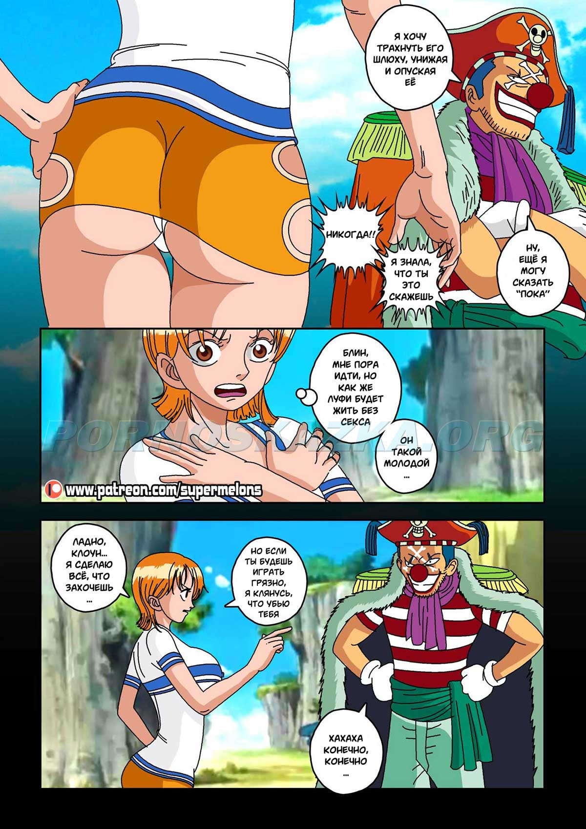 Порно комикс Ван Пис. Семя дьявола. Super Melons. Девушка пират очень хочет трахаться, она не смогла соблазнить никого из своей команды и отправилась на остров разбойников. Девушка видела там парня который любит трахаться и сможет удовлетворить её потребность.
