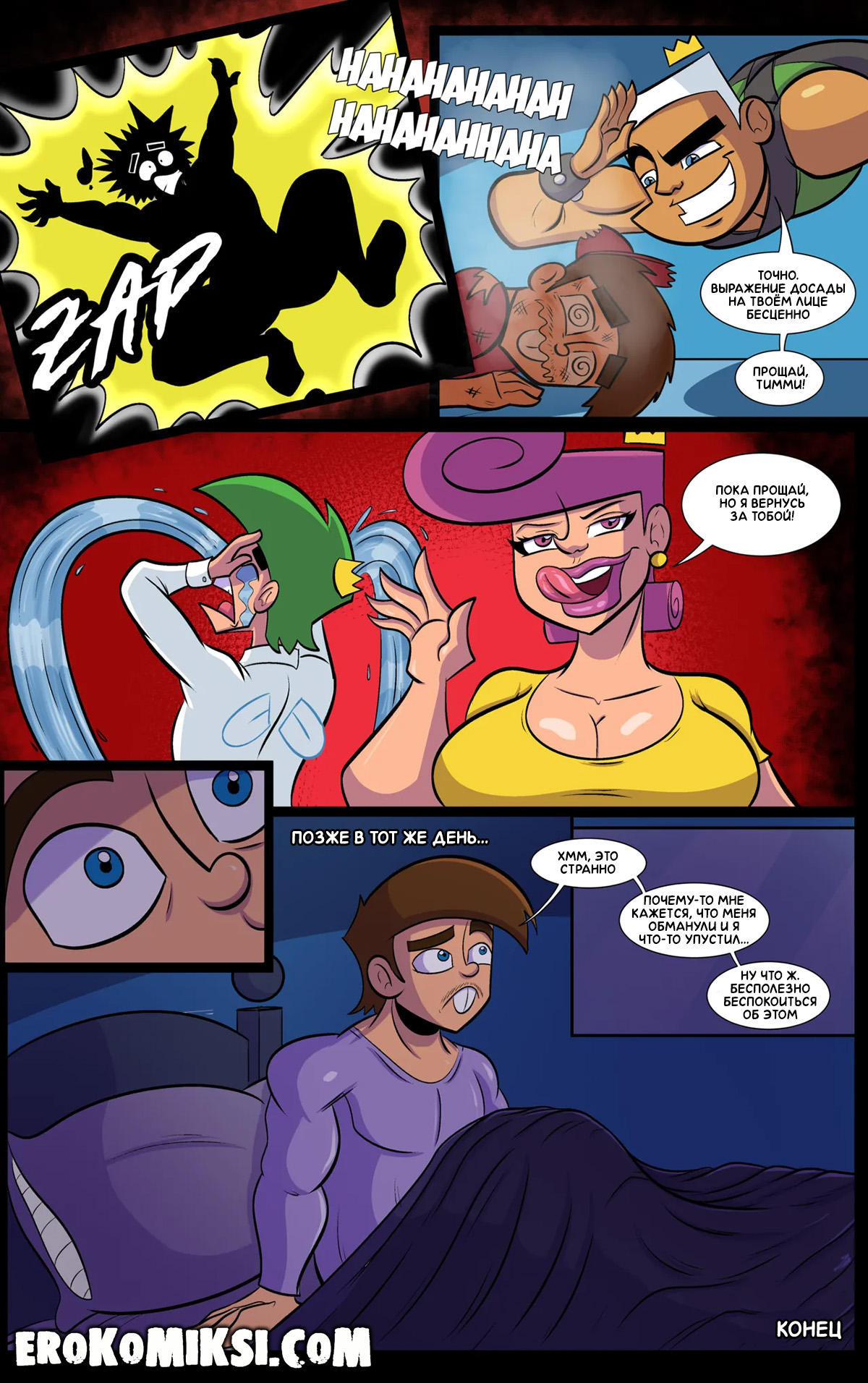 Порно комикс Волшебные покровители. Тимми. Последнее желание. Fairly Final Wish. Тимми стал взрослым, а его крёстные волшебные родители его покидают. Парень не хочет этого, но настоящий отец заставляет его, потому что у него начался пубертат. Тимми прощается с Вандой и трахает её, желая превратить напоследок эту милфу в свой персональный чехол для хуя…